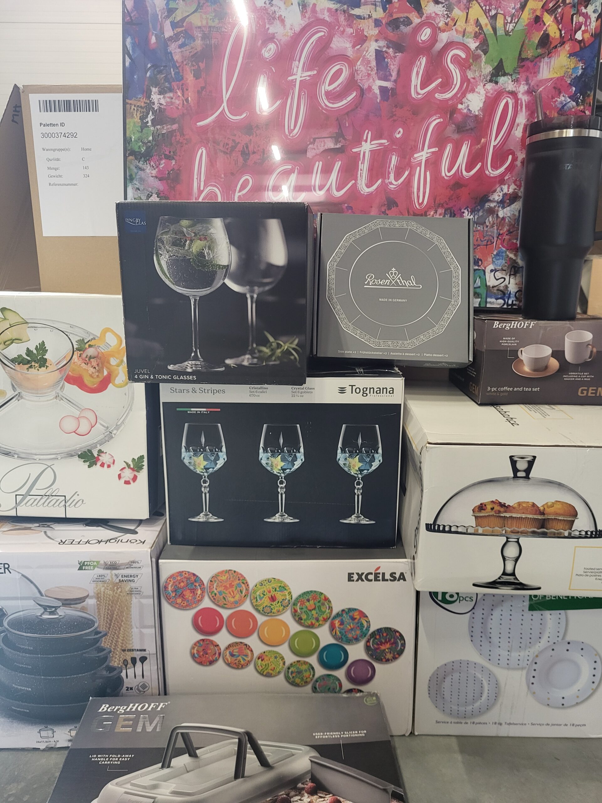 Paleta z akcesoriami domowymi tj. obrazy, akcesoria kuchenne,obrazy, zastawa kuchenna, świeczki, elementy wyposażenia itp. Kategoria C – defekty.