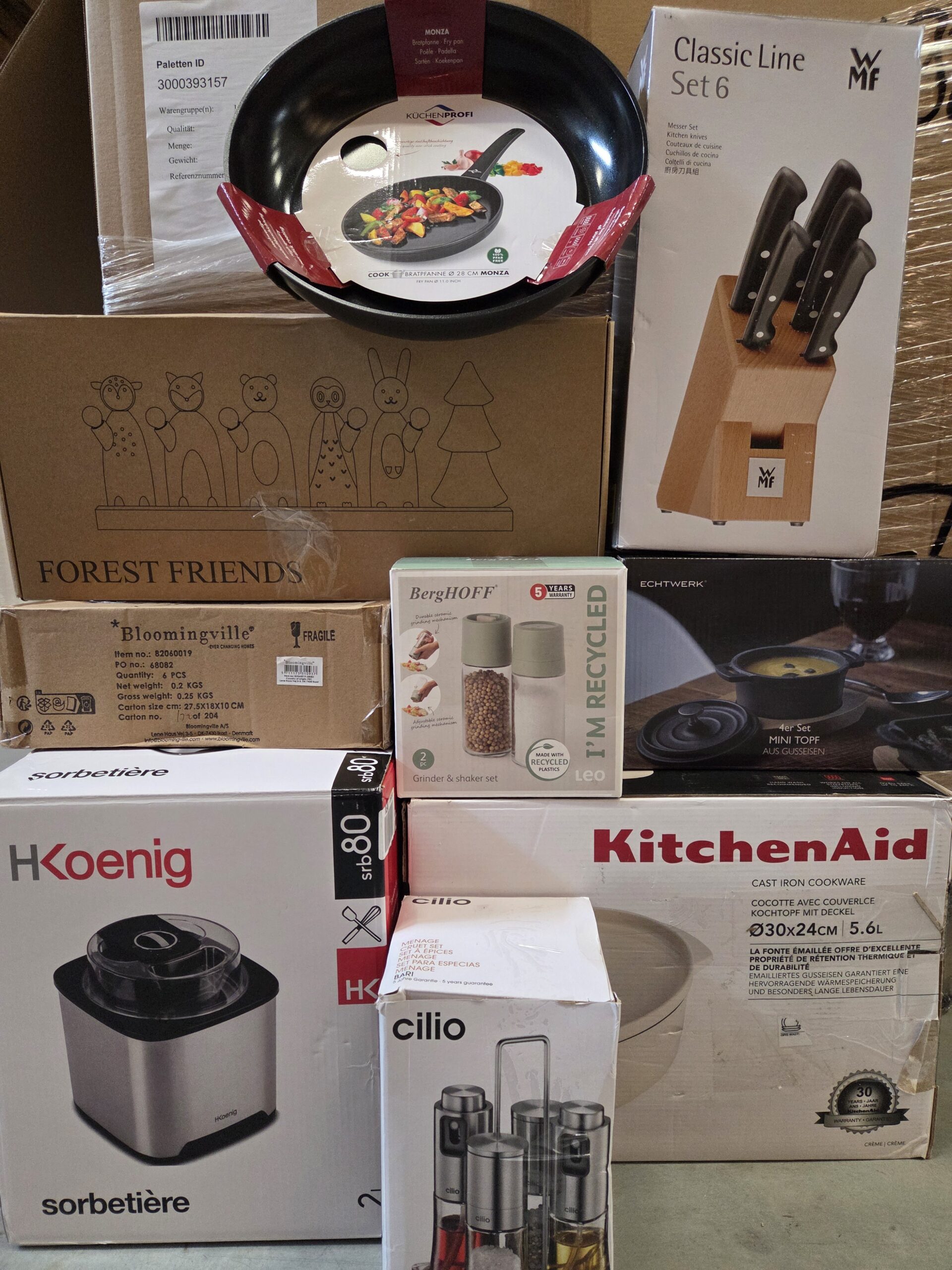 Oferujemy palety akcesoriów domowych w kategorii C, zawierające produkty z widocznymi defektami i uszkodzeniami. Nasze palety zawierają szeroki asortyment, w tym obrazy, akcesoria kuchenne, zastawę stołową, świeczki oraz elementy wyposażenia wnętrz. Produkty mogą mieć uszkodzone opakowania, braki w kompletach czy inne charakterystyczne defekty, ale nadal nadają się do użytku lub naprawy. To świetna oferta dla sklepów i hurtowników, którzy poszukują atrakcyjnych cenowo artykułów do dalszej odsprzedaży.