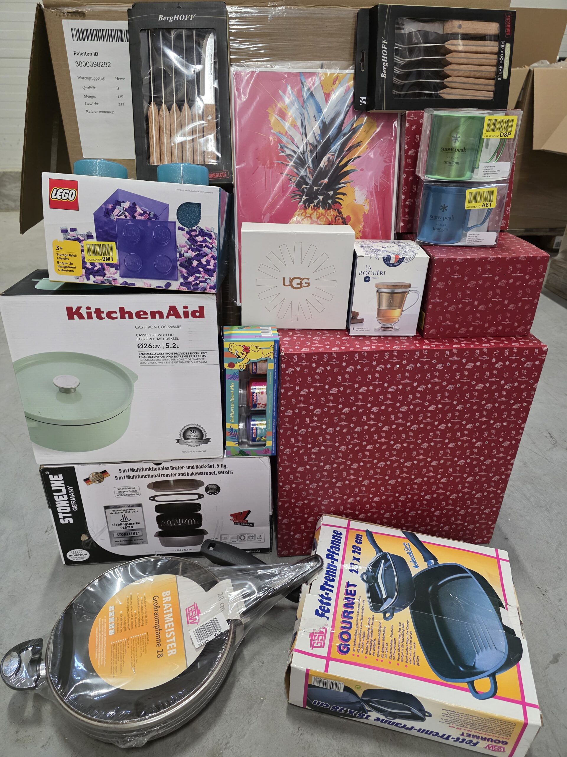 Artykuły mogą posiadać ślady użytkowania lub defekty (wady producenta, uszkodzone opakowania, zarysowanie, brakujący element, produkt uszkodzony). Na paletach mogą znaleźć się między innymi: pościele, poduszki, pufy, ręczniki, kapcie, itp