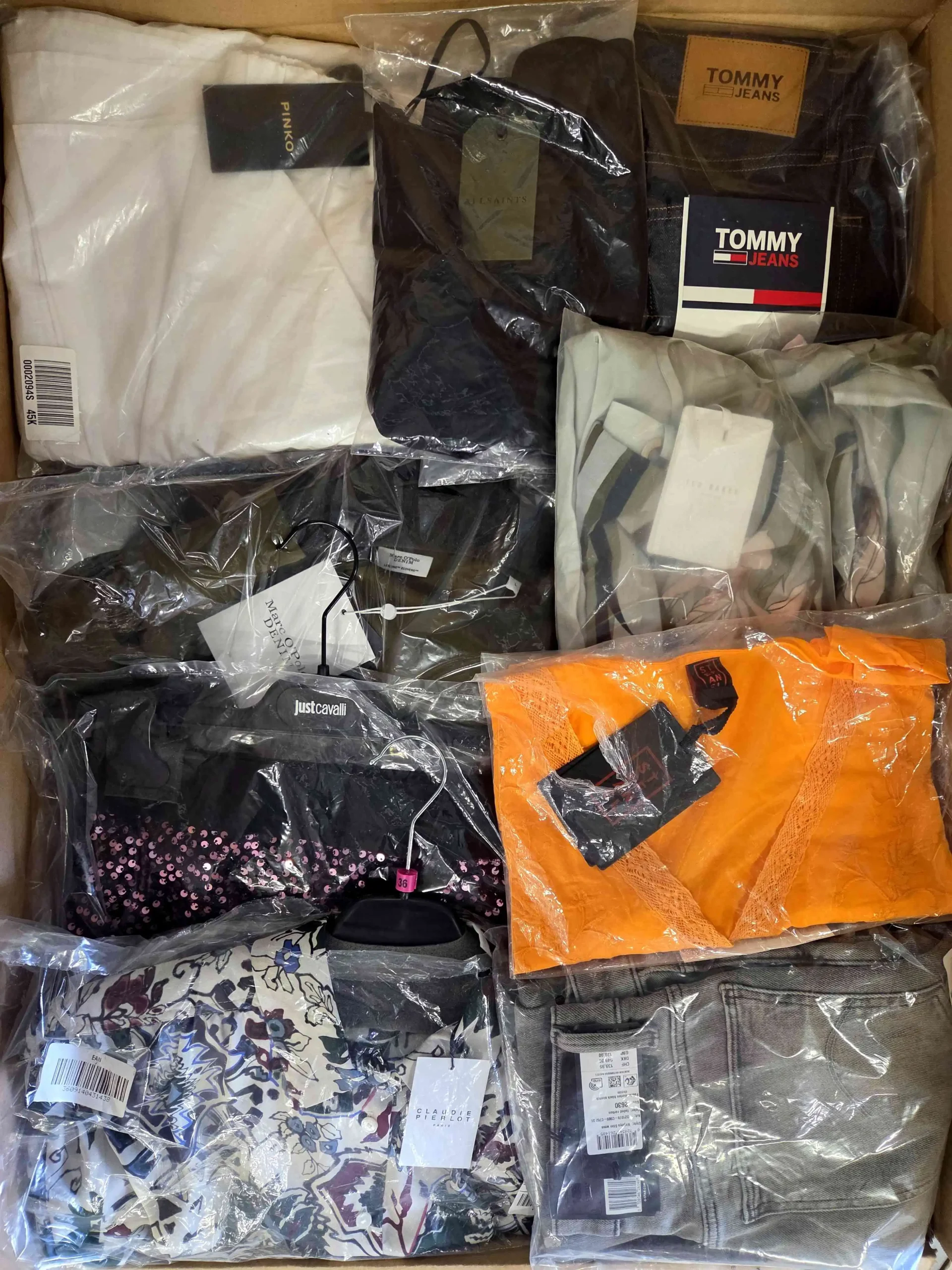 Pakiet odzieży zawierający mix marek w kategorii jakościowej A. Ok. 100% pakietu z metką papierową, a 30-35% to najbardziej rozpoznawalne marki. Pokazana wierzchnia warstwa jest zawartością tego pakietu oraz przedstawia najlepsze marki.
