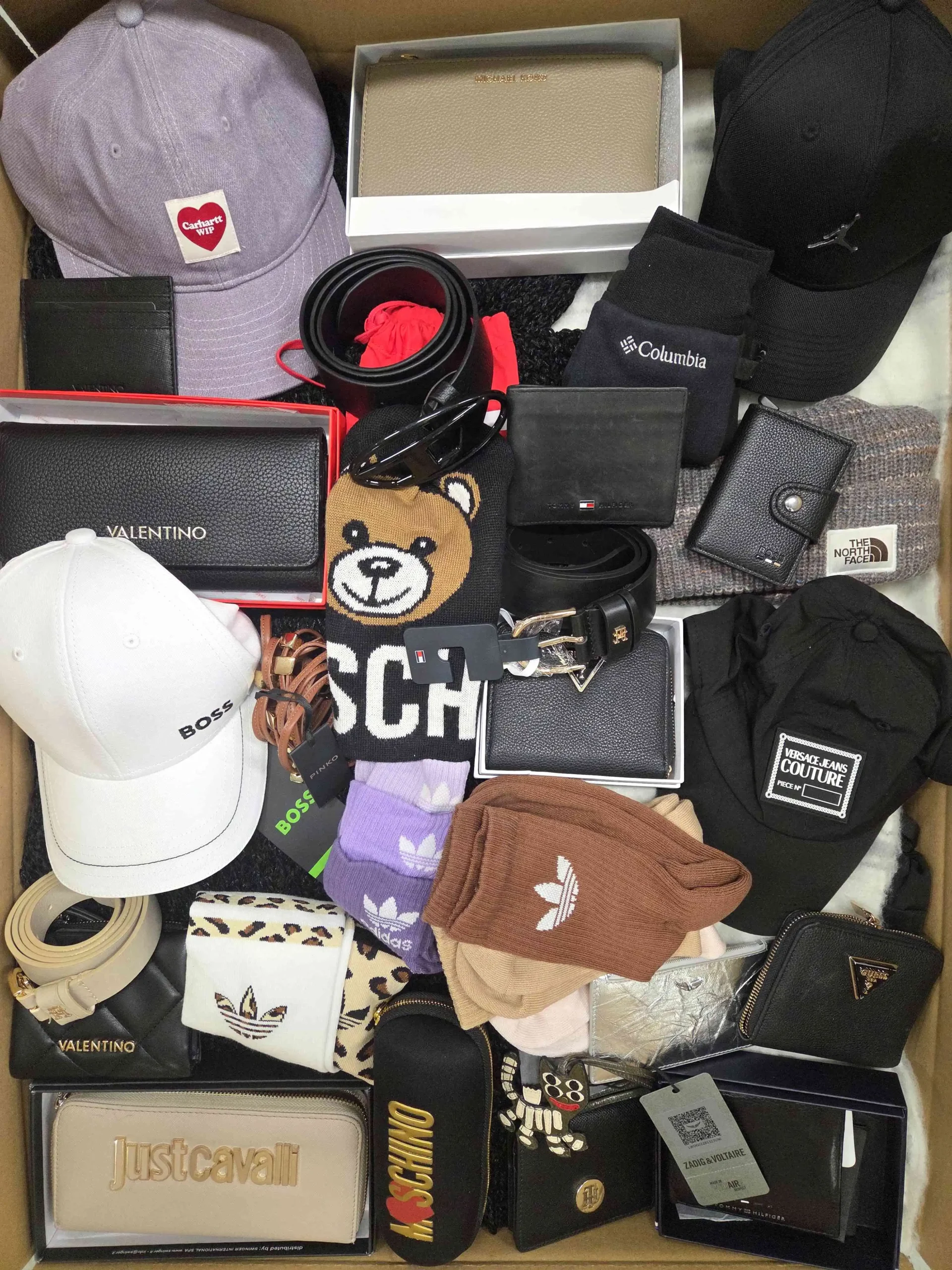 Akcesoria premium w kategorii C. W środku znajdą Państwo między innymi: rajstopy, staniki, portfele, paski, apaszki, skarpetki, okulary, czapki z daszkiem, saszetki, itp. W pakiecie znajduje się około 160 sztuk.