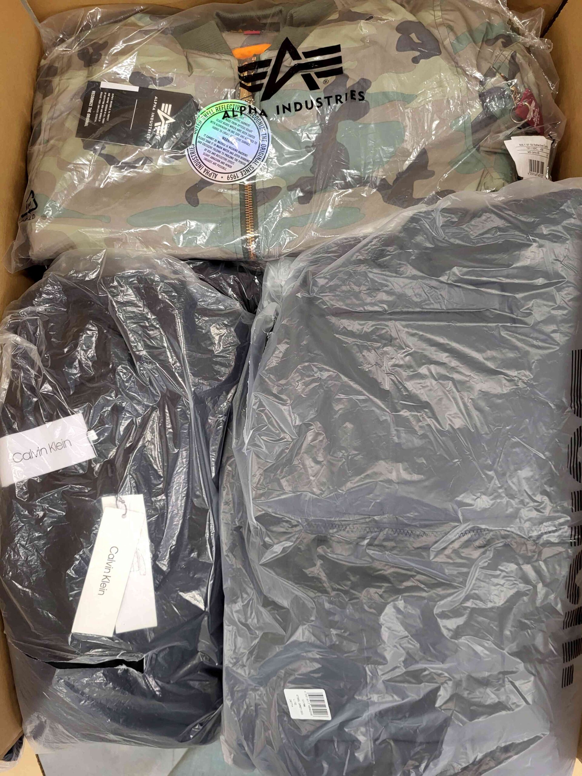 W skład pakietu wchodzi ok. 20 sztuk kurtek. Występują kurtki unisex oraz pojedyncze sztuki kurtek dziecięcych.