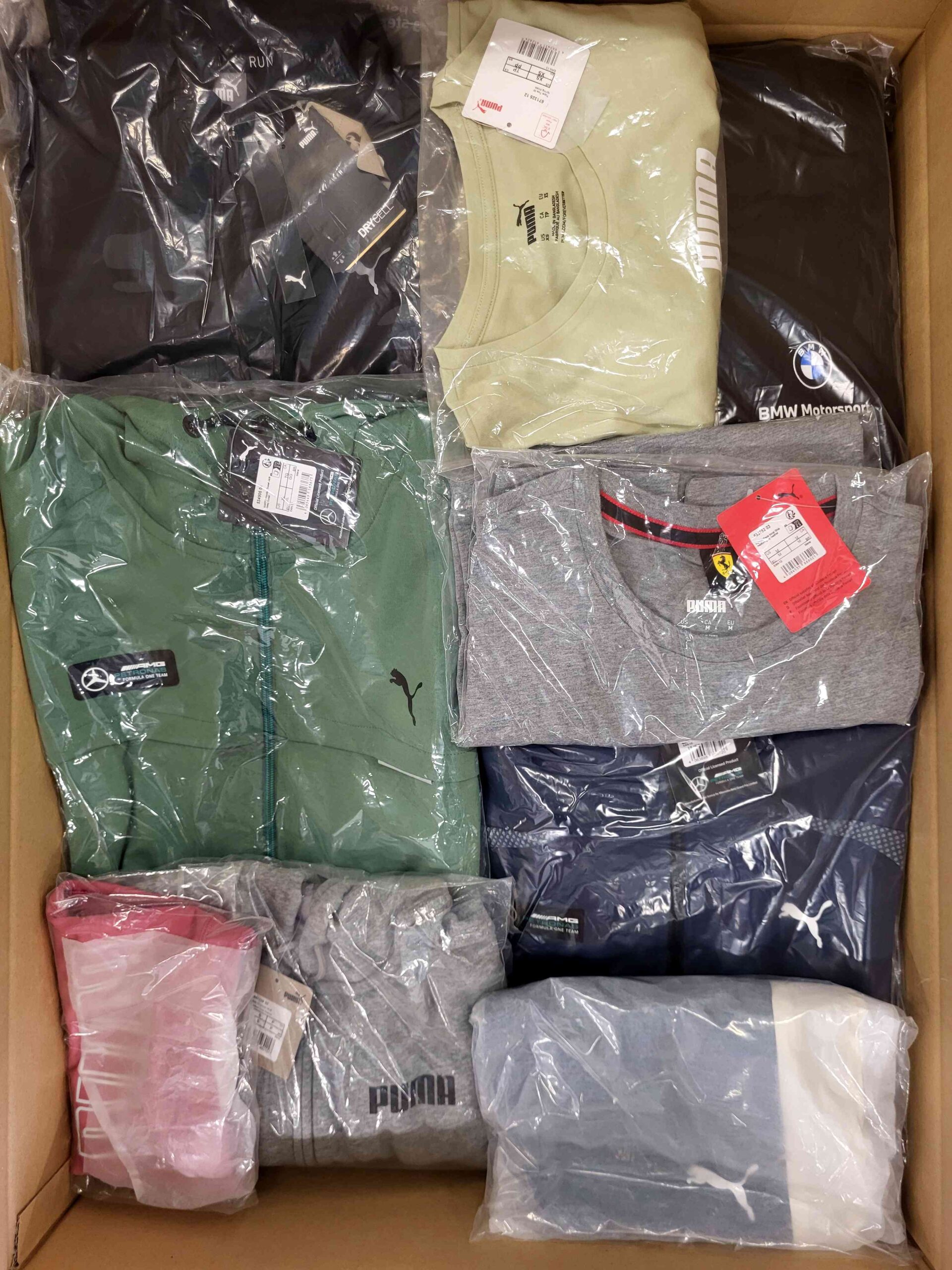 Pakiet odzieży sportowej w miksie modeli i rozmiarów, idealny dla sklepów stacjonarnych i internetowych. Zawiera spodnie, bluzy, t-shirty, stroje kąpielowe i inne elementy garderoby.