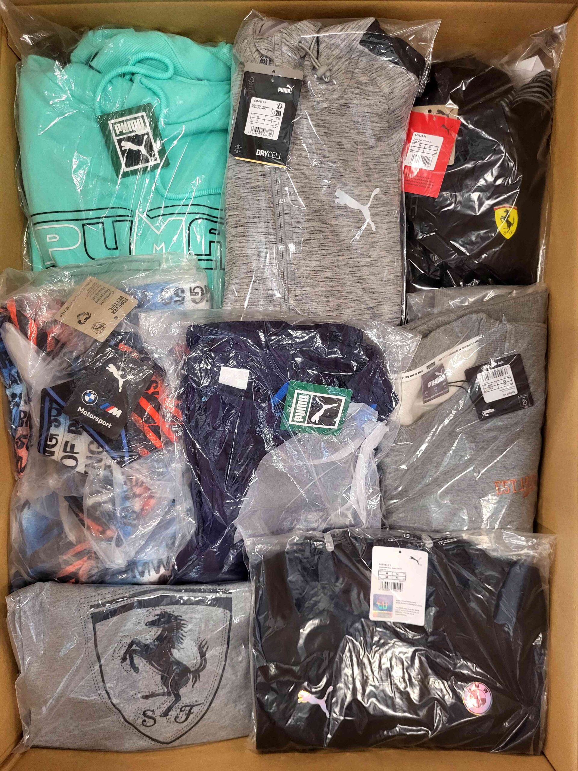 Pakiet odzieży sportowej w miksie modeli i rozmiarów, idealny dla sklepów stacjonarnych i internetowych. Zawiera spodnie, bluzy, t-shirty, stroje kąpielowe i inne elementy garderoby.