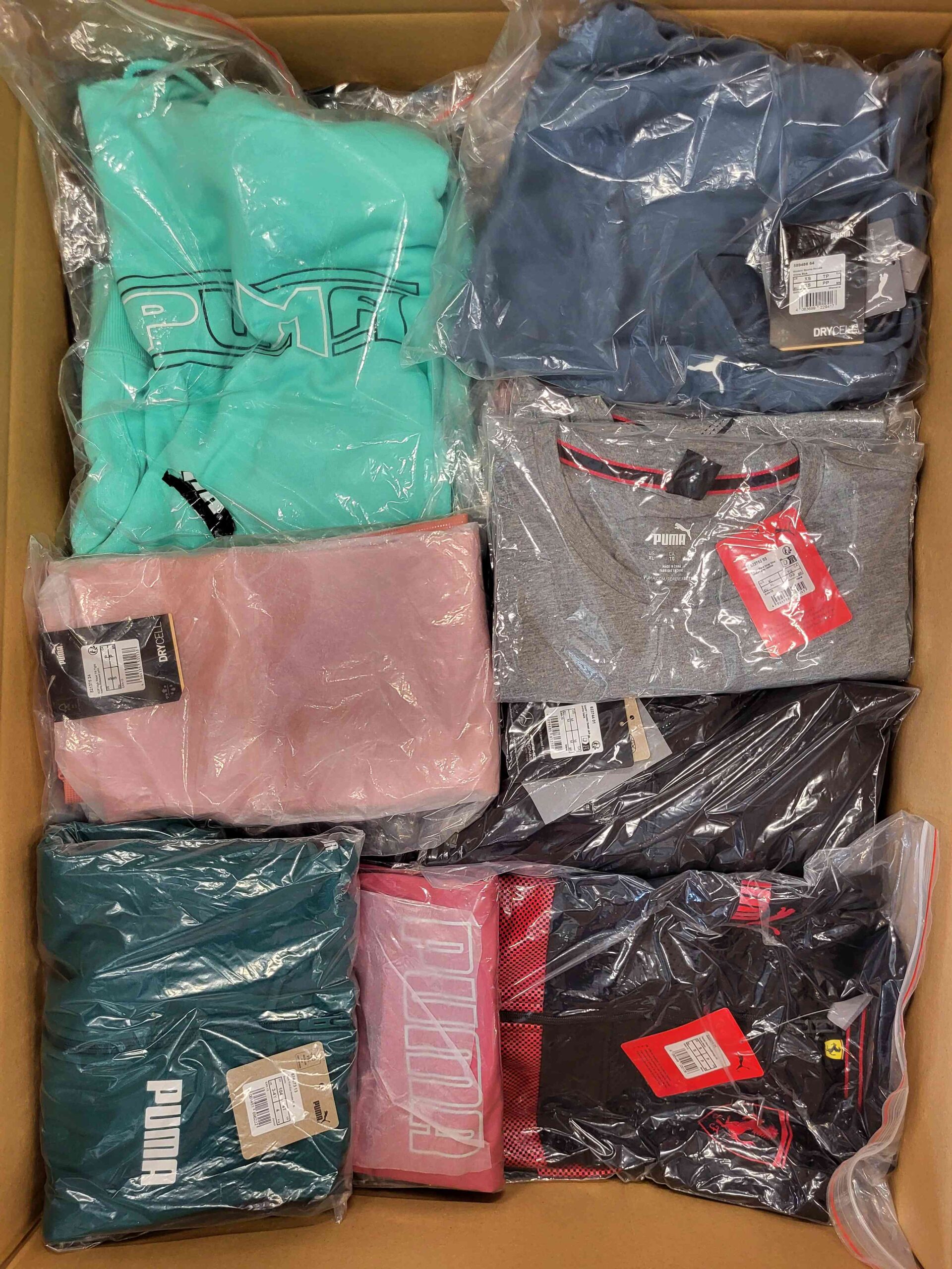 Pakiet odzieży sportowej w miksie modeli i rozmiarów, idealny dla sklepów stacjonarnych i internetowych. Zawiera spodnie, bluzy, t-shirty, stroje kąpielowe i inne elementy garderoby.