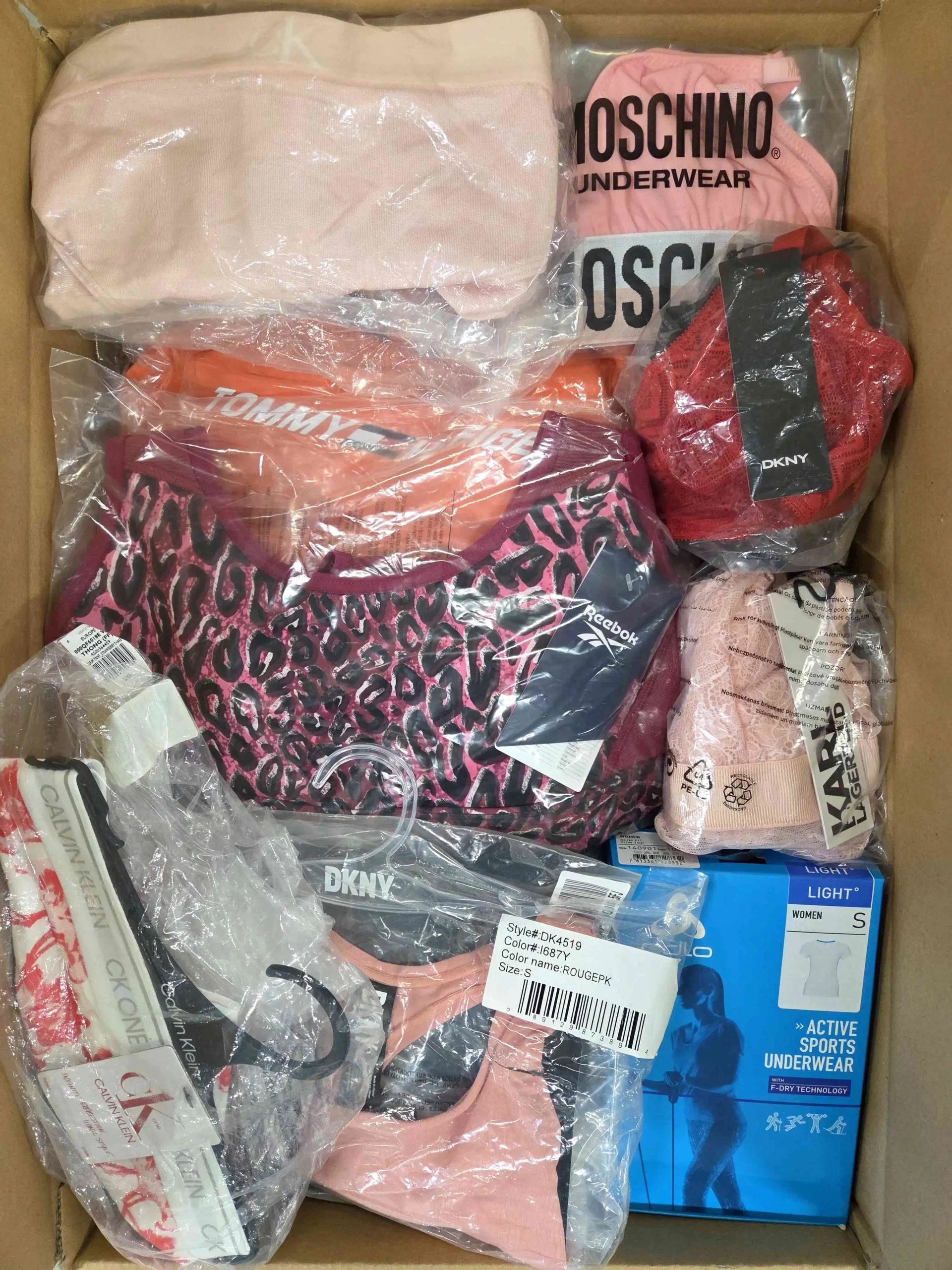 W skład każdego pakietu wchodzi 70 szt. m.in. piżamy, podkoszulki, koszule nocne, spodenki, majtki, komplety bielizny, skarpetki, bokserki, staniki sportowe, majtki dziecięce, pojedyncze sztuki strojów kąpielowych. Ok. 30% to najbardziej rozpoznawalne marki. Pakiety w kategorii A zawierają produkty z poprzednich kolekcji i sezonów.
