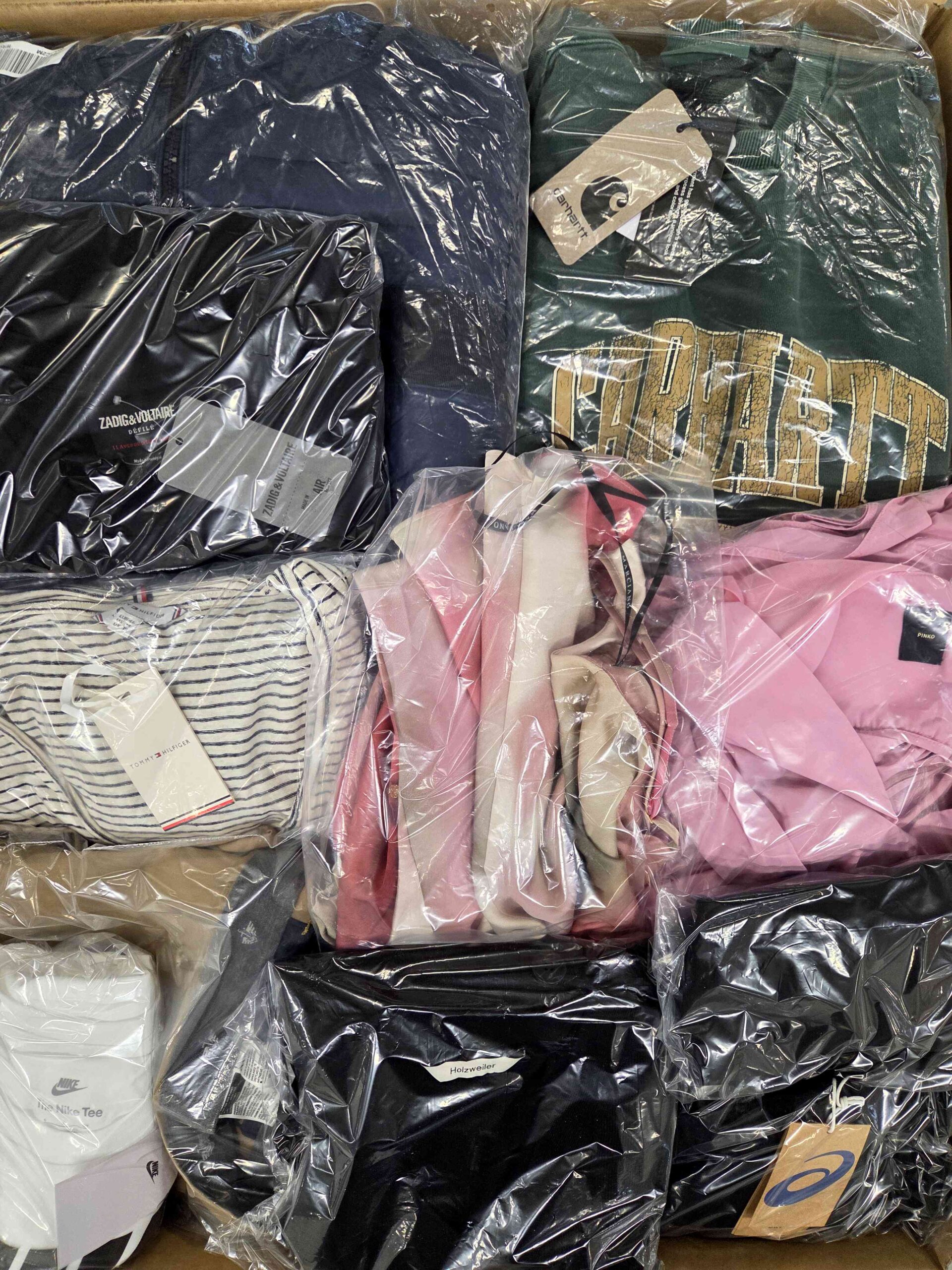 Pakiet odzieży zawierający mix marek w kategorii B. Odzież w tej kategorii może posiadać minimalne, w większości odwracalne defekty np. w postaci przybrudzeń, małej dziurki czy zaciągniętej nitki itp.