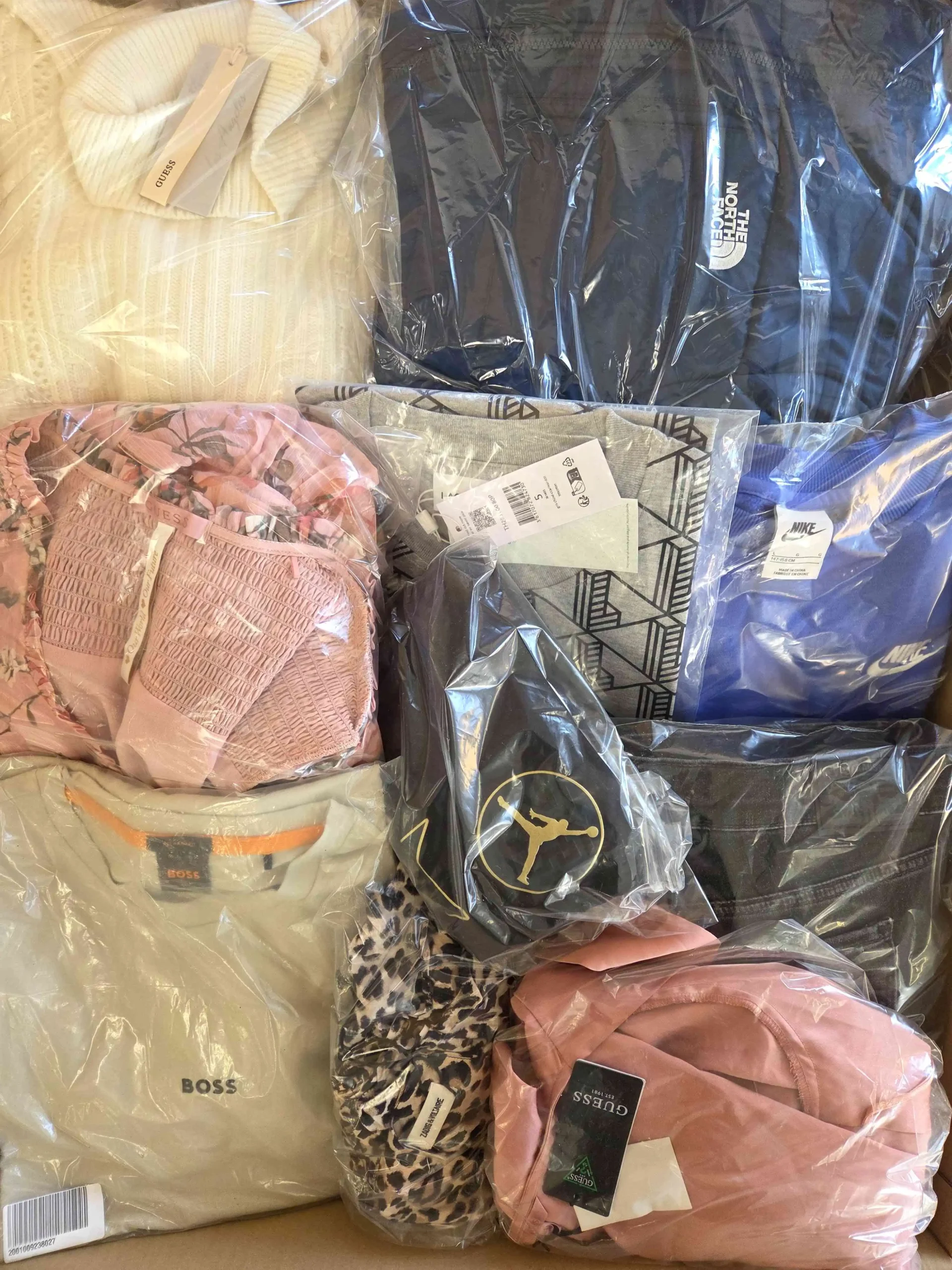Pakiet odzieży zawierający mix marek w kategorii B. Odzież w tej kategorii może posiadać minimalne, w większości odwracalne defekty np. w postaci przybrudzeń, małej dziurki czy zaciągniętej nitki itp.