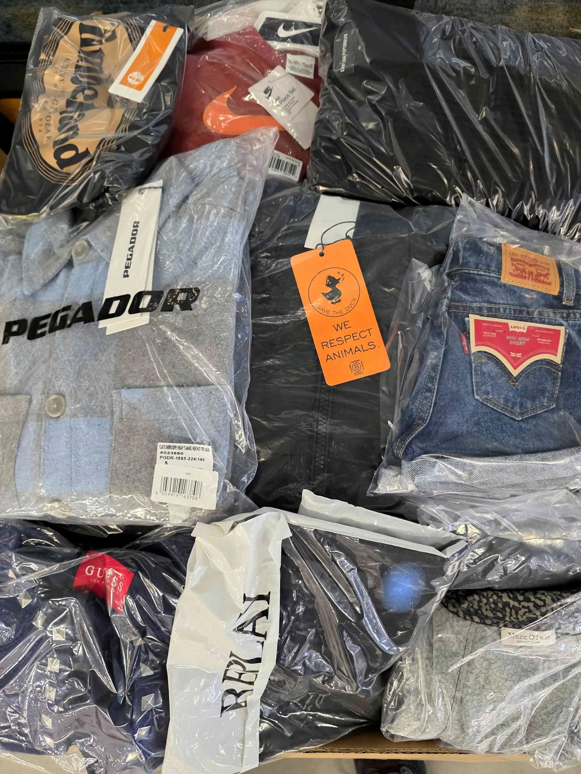 Pakiet odzieży zawierający mix marek w kategorii B. Odzież w tej kategorii może posiadać minimalne, w większości odwracalne defekty np. w postaci przybrudzeń, małej dziurki czy zaciągniętej nitki itp.