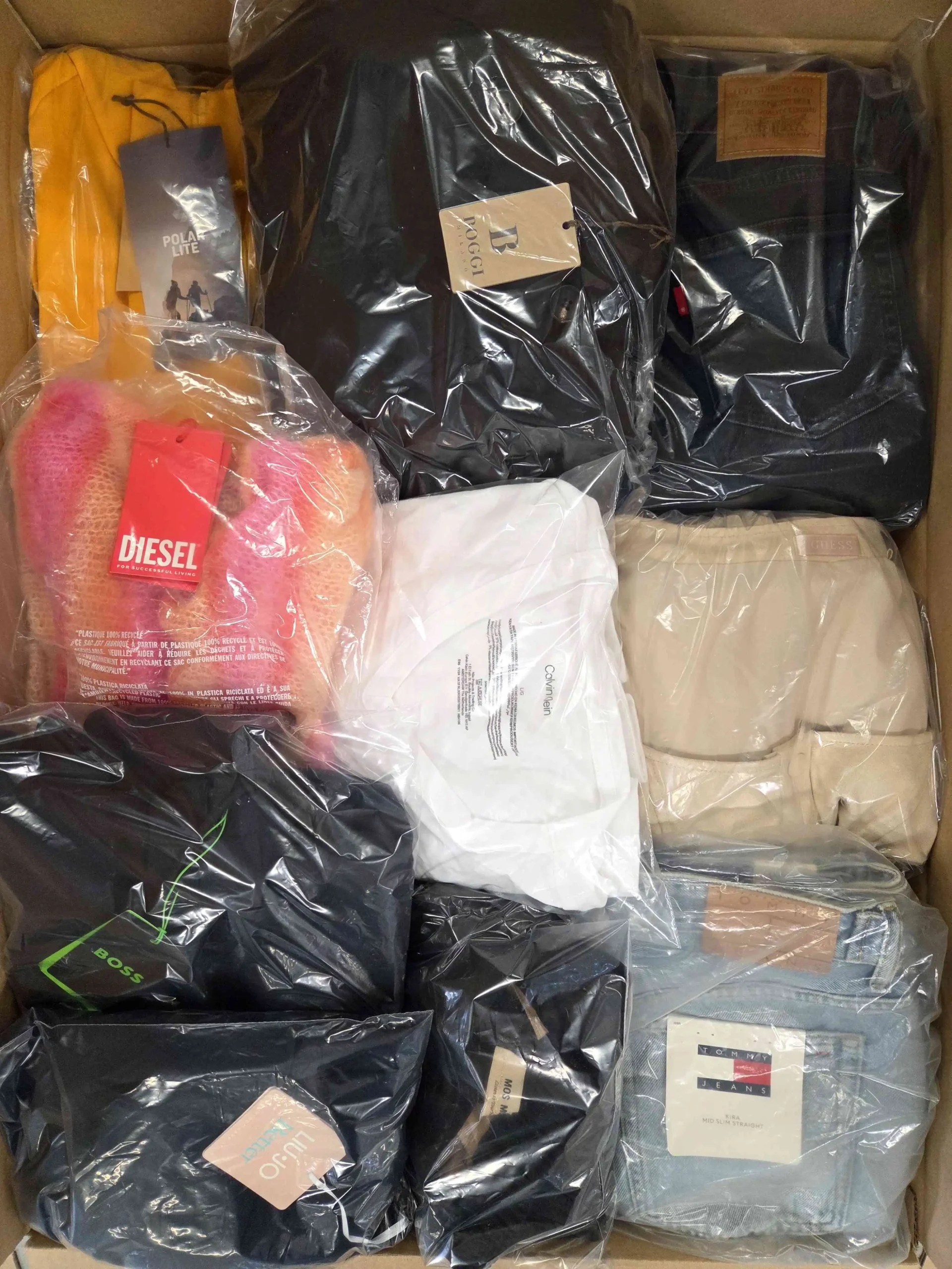 Pakiet odzieży zawierający mix marek w kategorii B. Odzież w tej kategorii może posiadać minimalne, w większości odwracalne defekty np. w postaci przybrudzeń, małej dziurki czy zaciągniętej nitki itp.