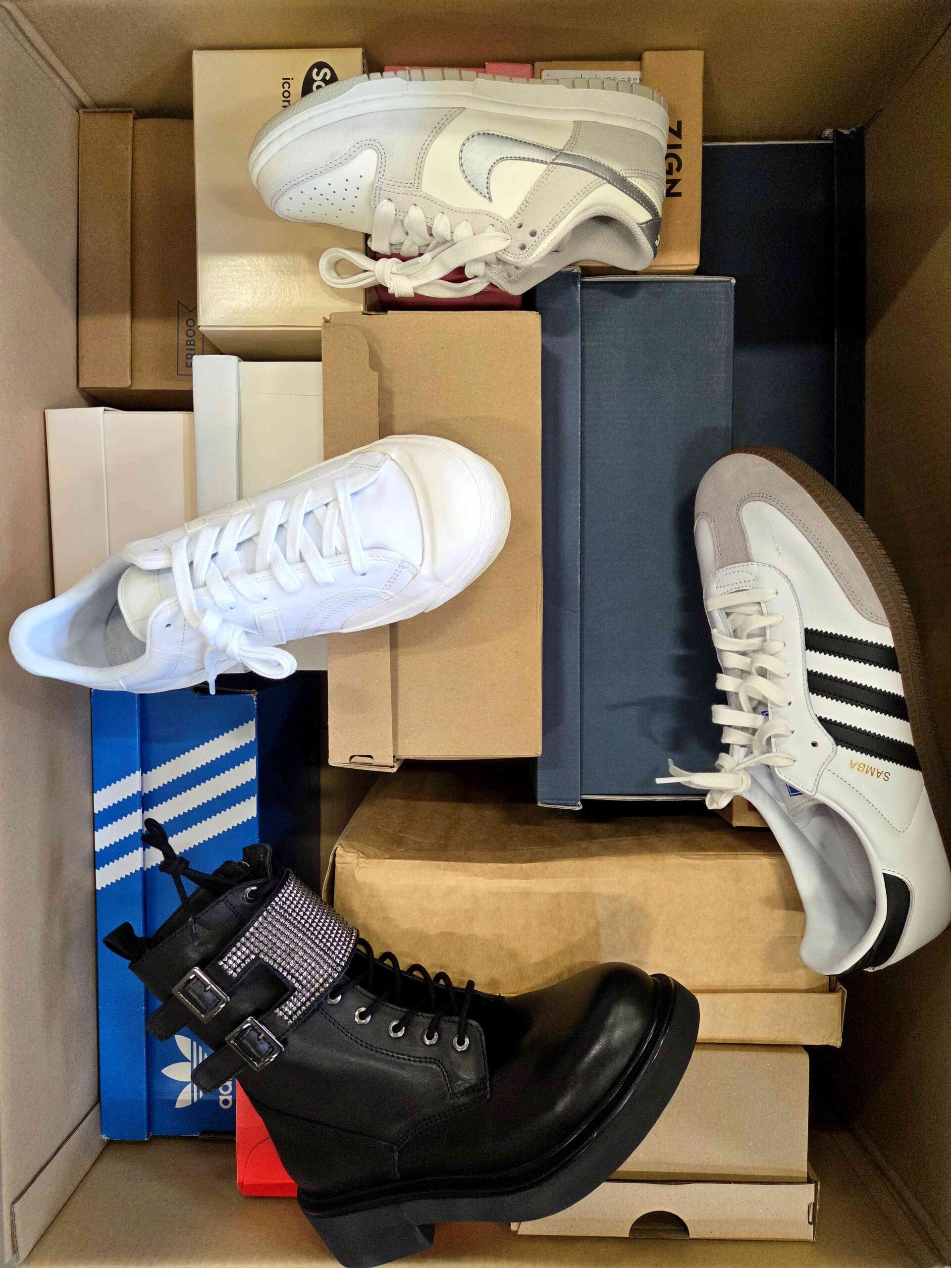 Produkt posiada minimalne, odwracalne ślady użytkowania(przybrudzenia) lub małe wady producenta. Obuwie zapakowane jest w oryginalne lub zastępcze kartony. W skład pakietu wchodzi 100% oryginalne obuwie, które nie jest dzielone ze względu na sezonowość. Mogą wystąpić modele zarówno zimowe, jak i letnie. W pakiecie może znajdować się obuwie męskie, damskie oraz dziecięce.