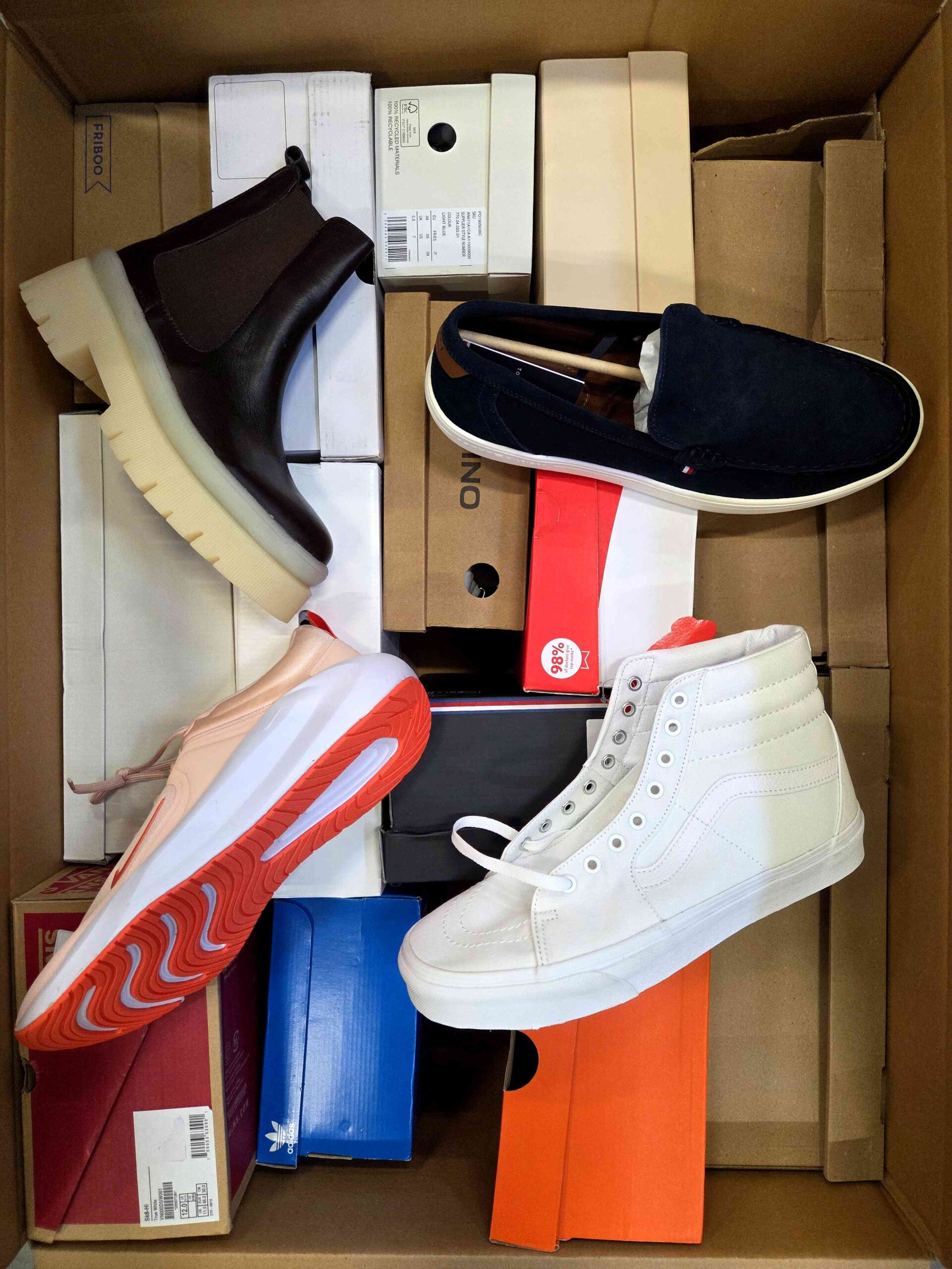 Produkt posiada minimalne, odwracalne ślady użytkowania(przybrudzenia) lub małe wady producenta. Obuwie zapakowane jest w oryginalne lub zastępcze kartony. W skład pakietu wchodzi 100% oryginalne obuwie, które nie jest dzielone ze względu na sezonowość. Mogą wystąpić modele zarówno zimowe, jak i letnie. W pakiecie może znajdować się obuwie męskie, damskie oraz dziecięce.