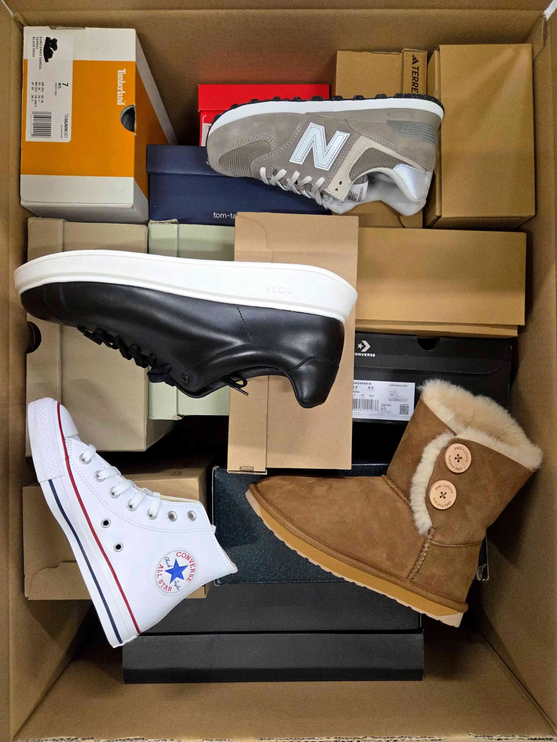 Produkt posiada minimalne, odwracalne ślady użytkowania(przybrudzenia) lub małe wady producenta. Obuwie zapakowane jest w oryginalne lub zastępcze kartony. W skład pakietu wchodzi 100% oryginalne obuwie, które nie jest dzielone ze względu na sezonowość. Mogą wystąpić modele zarówno zimowe, jak i letnie. W pakiecie może znajdować się obuwie męskie, damskie oraz dziecięce.