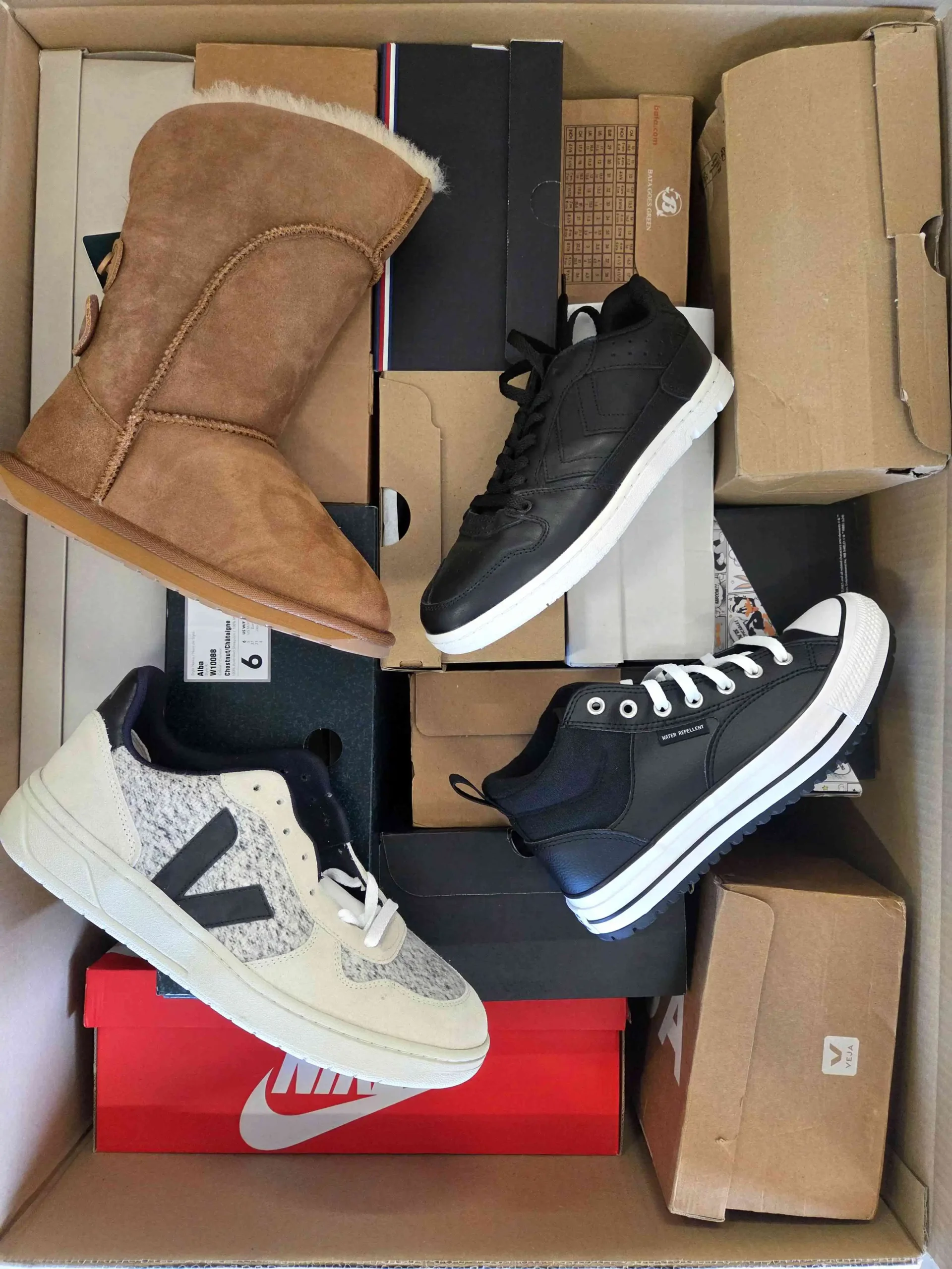 Produkt posiada minimalne, odwracalne ślady użytkowania(przybrudzenia) lub małe wady producenta. Obuwie zapakowane jest w oryginalne lub zastępcze kartony. W skład pakietu wchodzi 100% oryginalne obuwie, które nie jest dzielone ze względu na sezonowość. Mogą wystąpić modele zarówno zimowe, jak i letnie. W pakiecie może znajdować się obuwie męskie, damskie oraz dziecięce.