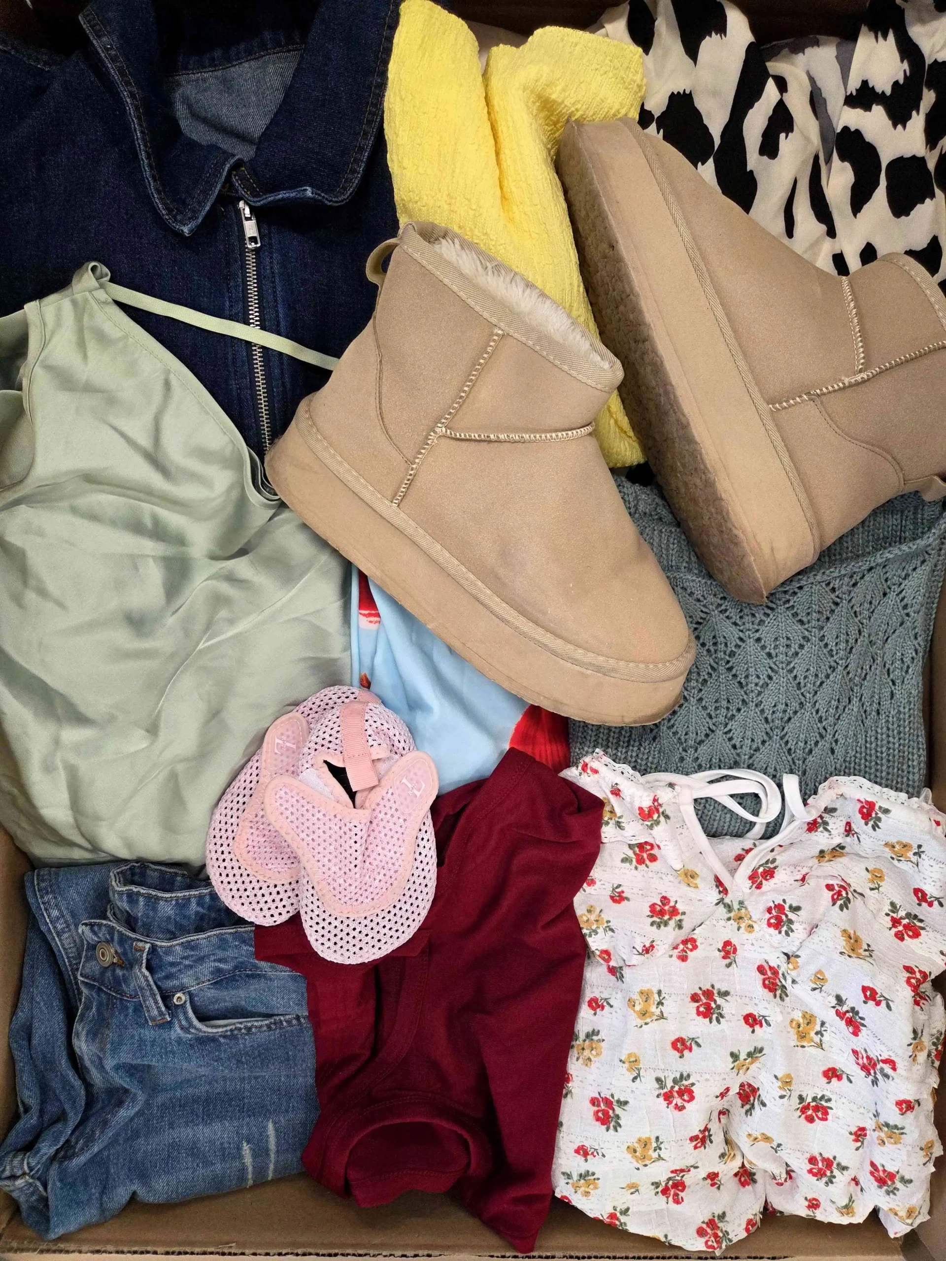 W pakiecie znajduje się około: 5 par butów, 15szt. akcesoriów oraz około 40szt. odzieży.