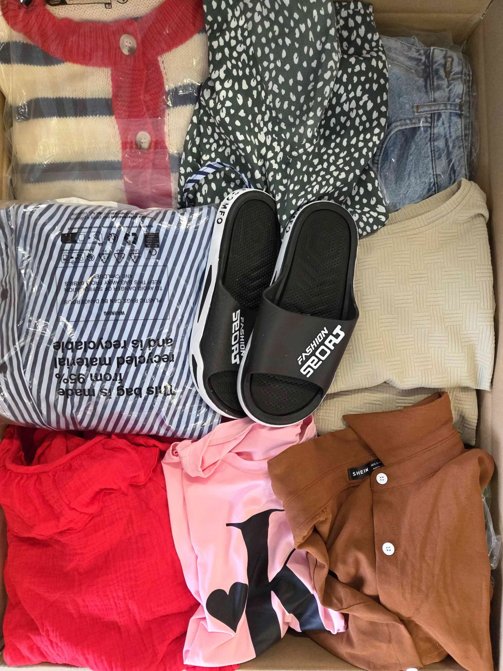 W pakiecie znajduje się około: 5 par butów, 15szt. akcesoriów oraz około 40szt. odzieży.
