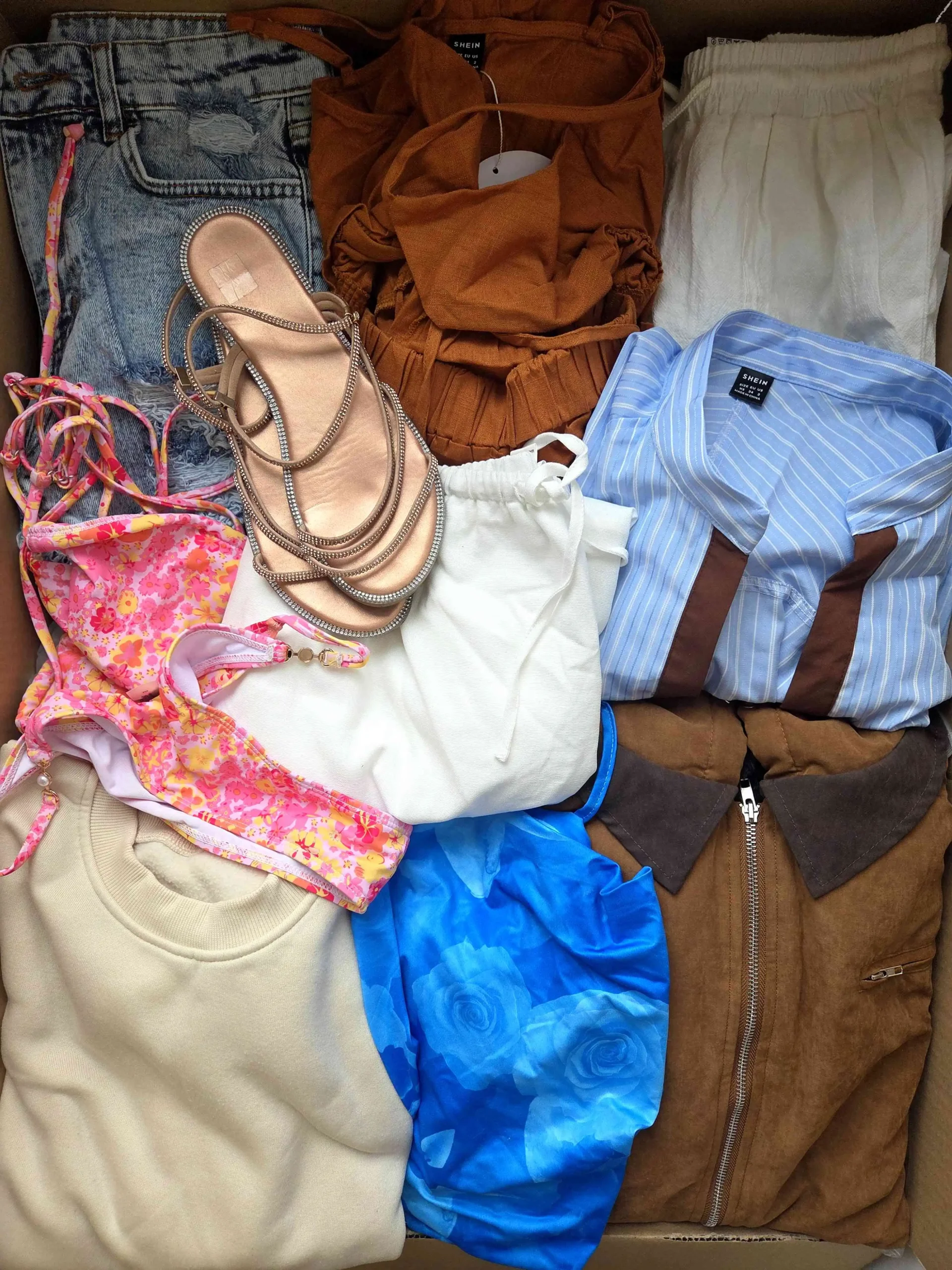W pakiecie znajduje się około: 5 par butów, 15szt. akcesoriów oraz około 40szt. odzieży.