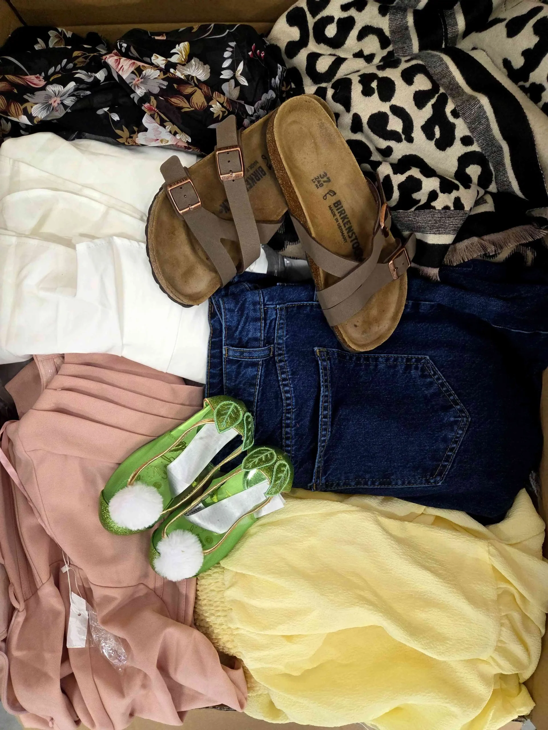 W pakiecie znajduje się około: 5 par butów, 15szt. akcesoriów oraz około 40szt. odzieży.