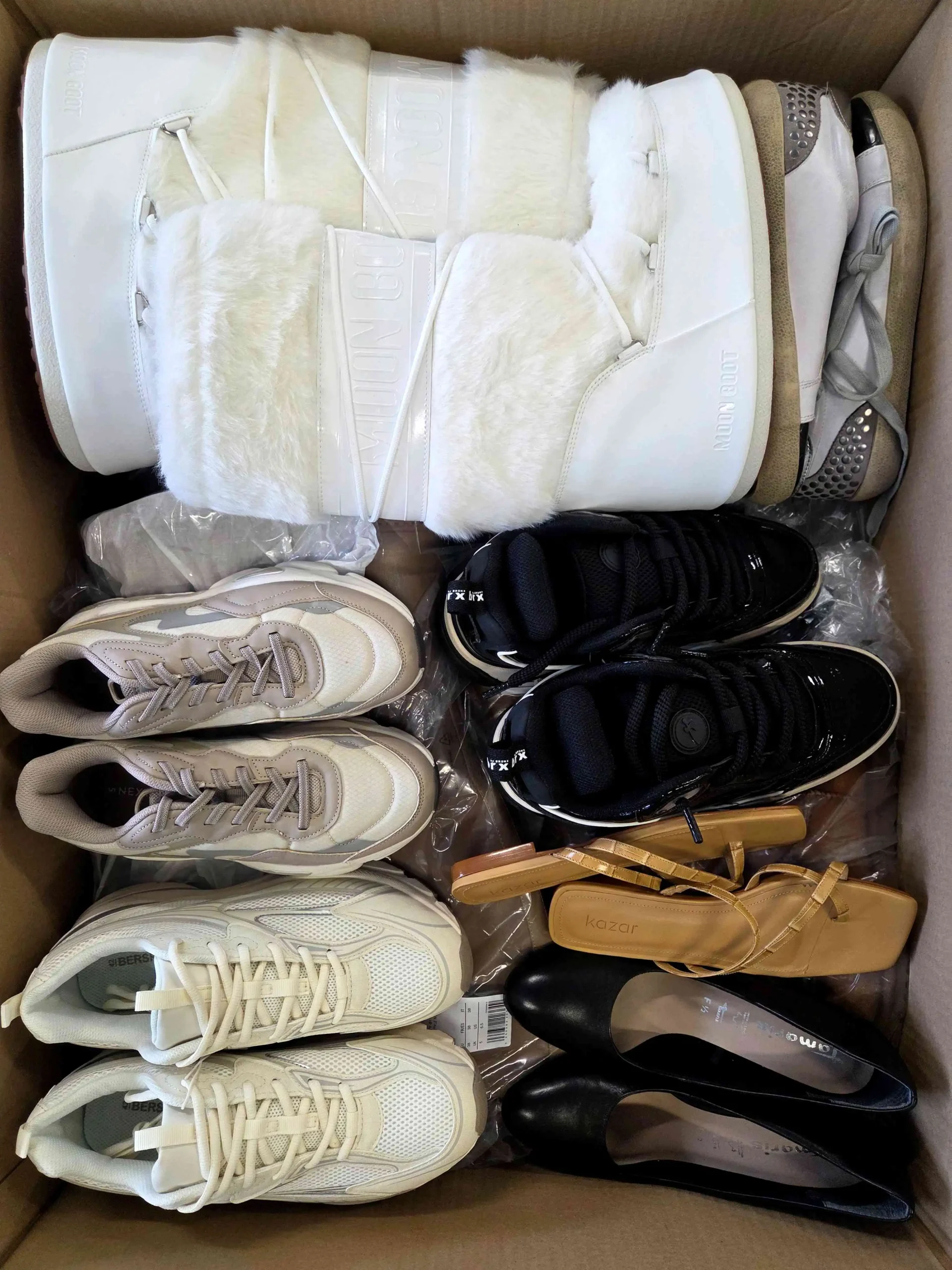 Mix obuwia bez kartoników w kategorii B. W jednym kartonie znajduje się 30 par obuwia. Pochodzi bezpośrednio z największej i najbardziej rozpoznawalnej platformy eCommerce w Europie.