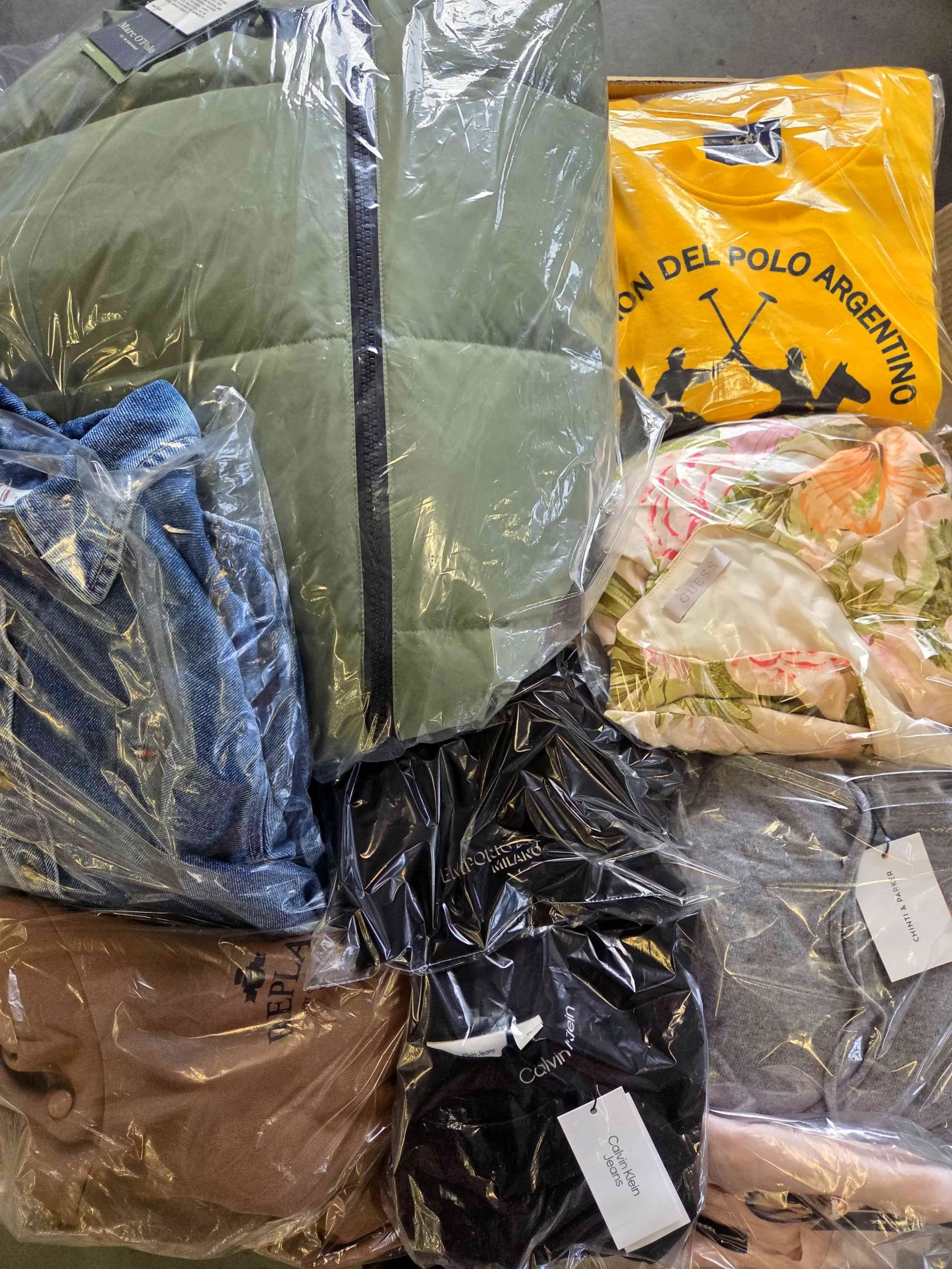 Pakiet odzieży zawierający mix marek w kategorii jakościowej C. Odzież posiada widoczne lub znaczne ślady użytkowania lub defekty (przebarwienia, dziury, zacięcia, rozerwane zamki, plamy, brak guzików).