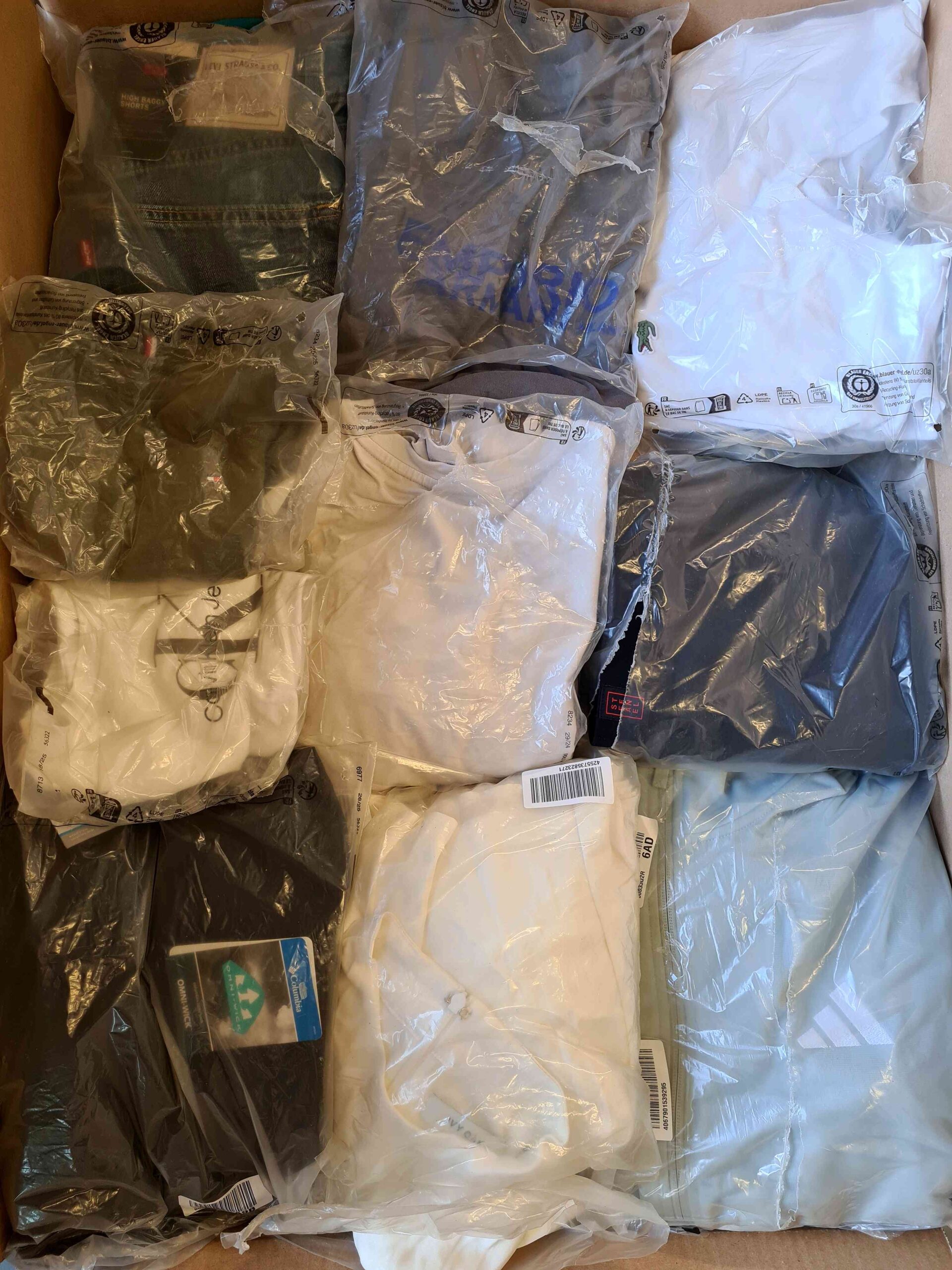 Pakiet średnio zawiera około 90szt. odzieży tj. bielizna (około 30szt.), swetry, koszulki, koszule, spodnie, stroje kąpielowe, kurtki, bluzy, sukienki.