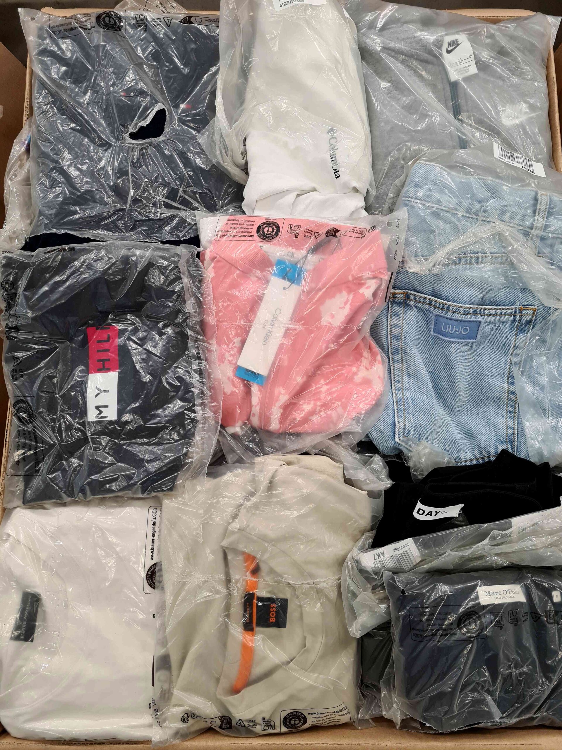 Pakiet średnio zawiera około 70szt. odzieży tj. bielizna, swetry, koszulki, koszule, spodnie, stroje kąpielowe, kurtki, bluzy, sukienki.