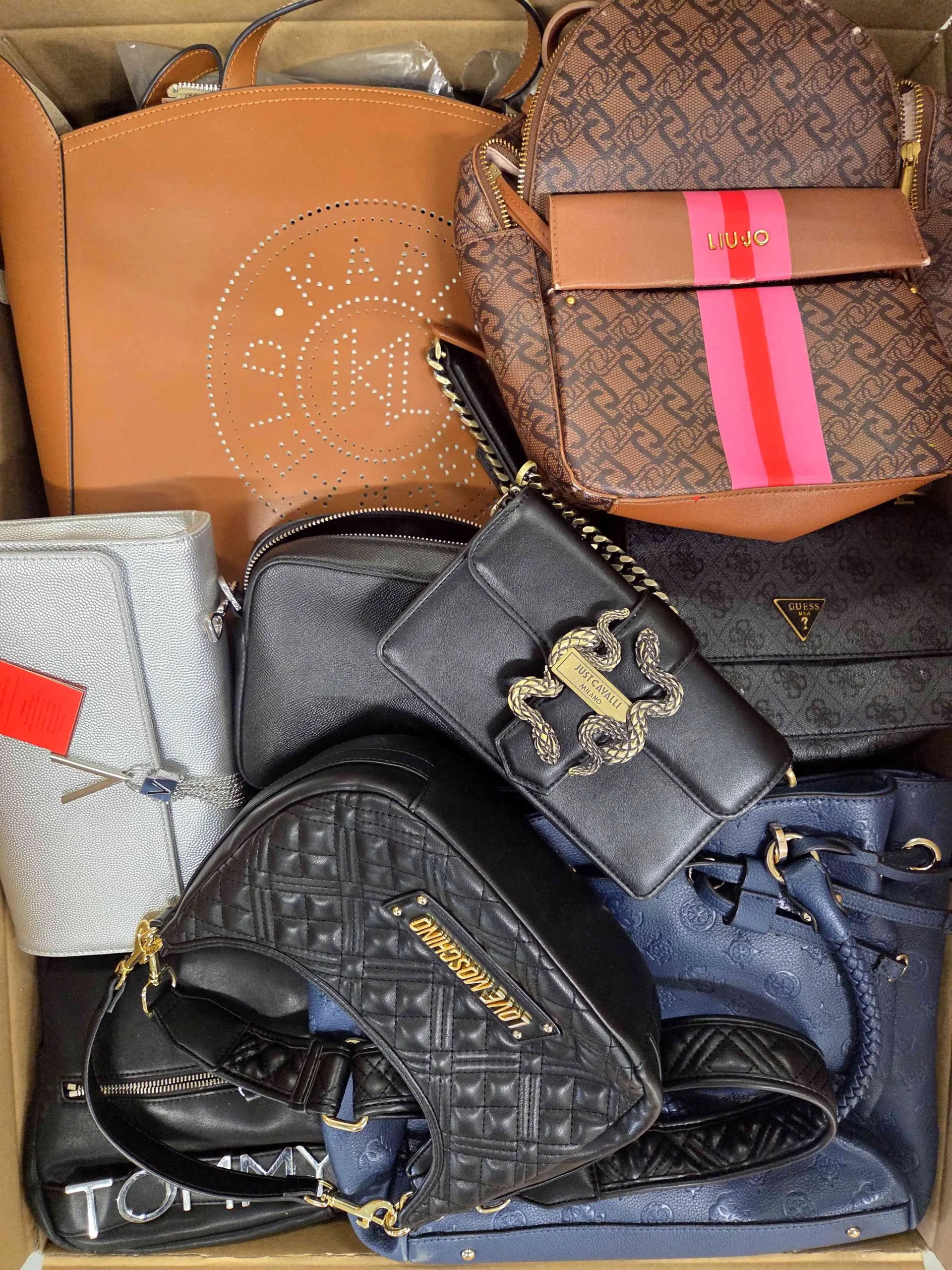 Oryginalne modele z obecnego / poprzedniego sezonu. Torebki posiadają znaczne ślady użytkowania lub widoczne defekty (zepsuty zamek, przecięcia, przetarcia, zabrudzenia, brak paska, zepsute zapięcie, itd.). W pakiecie znajdować się mogą plecaki, saszetki, torebki materiałowe, torebki średnie.