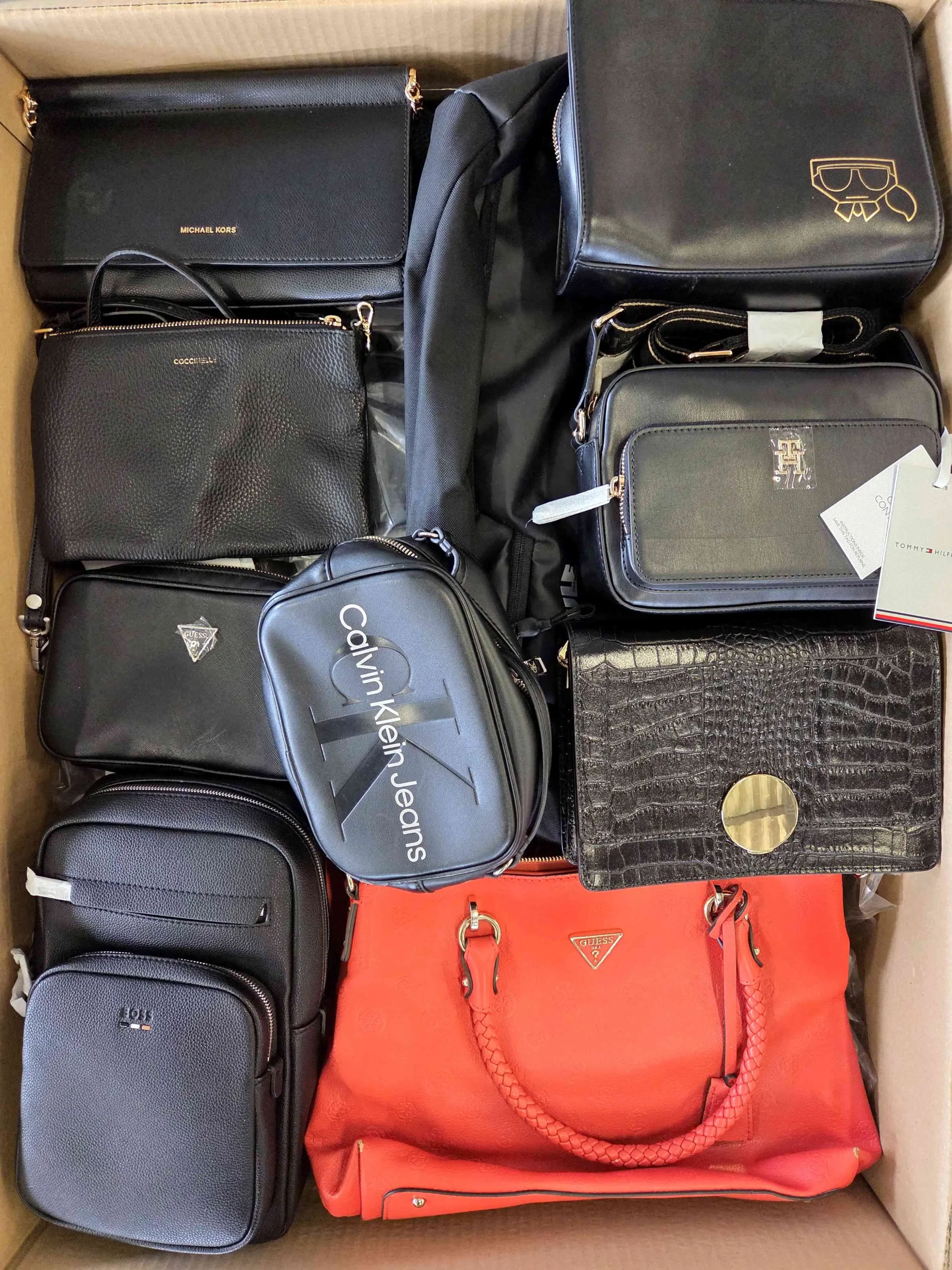 Oryginalne modele z obecnego / poprzedniego sezonu. Torebki posiadają znaczne ślady użytkowania lub widoczne defekty (zepsuty zamek, przecięcia, przetarcia, zabrudzenia, brak paska, zepsute zapięcie, itd.). W pakiecie znajdować się mogą plecaki, saszetki, torebki materiałowe, torebki średnie.