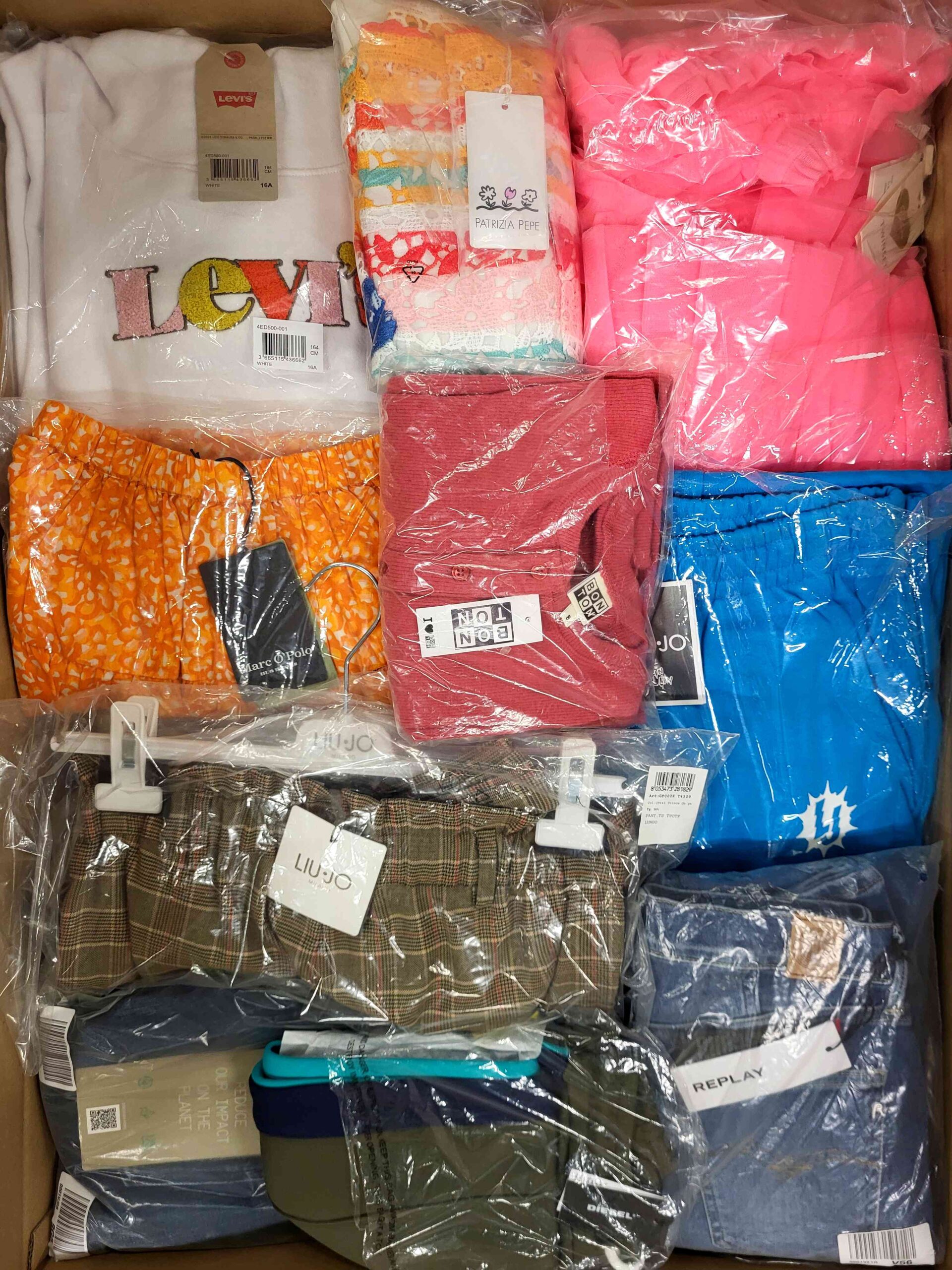 Produkt nowy, w 100% oryginalny, całkowicie bez defektów, oryginalnie zapakowany. W skład pakietu wchodzi ok. 85 szt. odzieży tj. bluzki, sukienki, dresy, koszulki, bluzy, spodenki