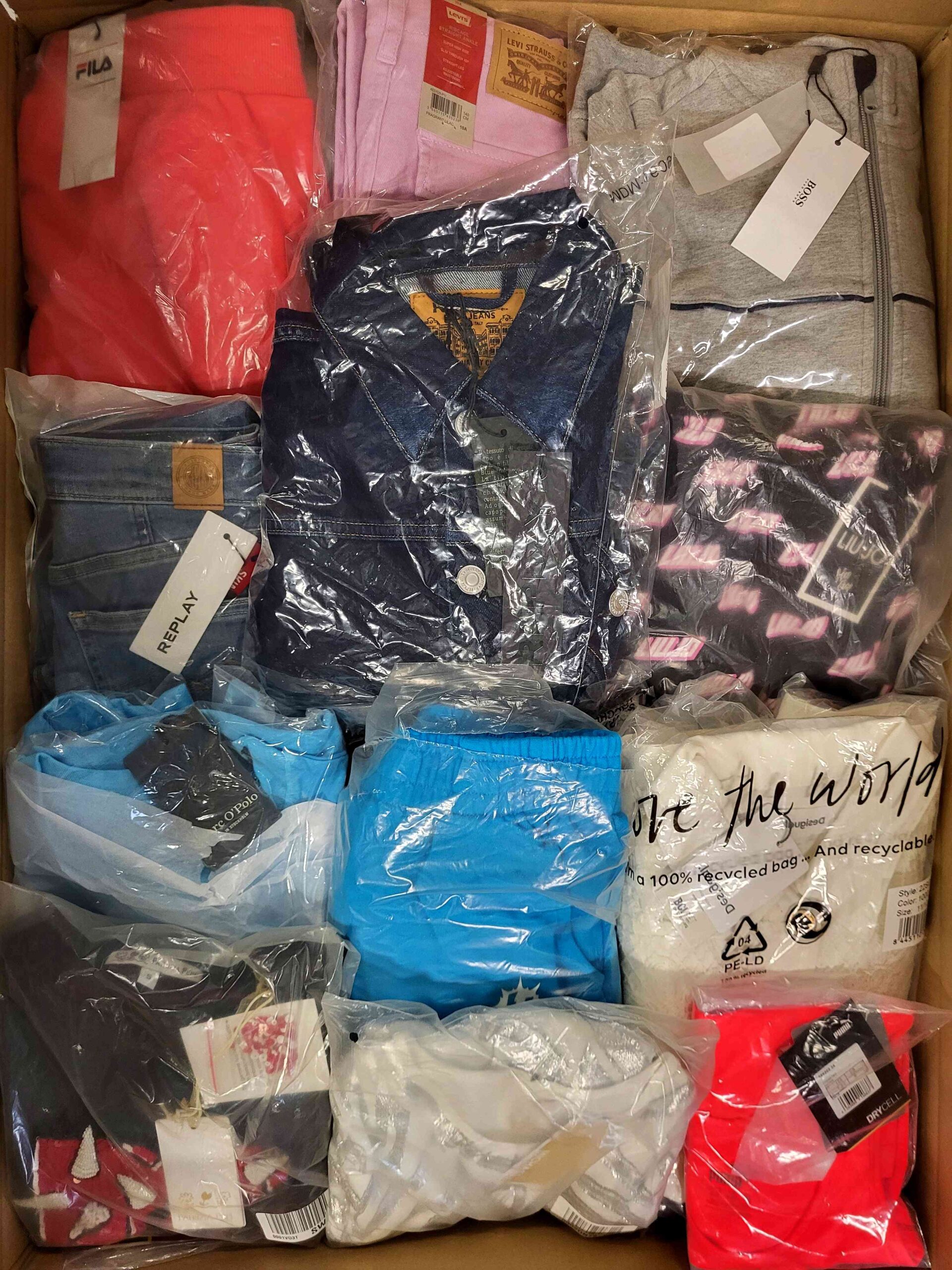 Produkt nowy, w 100% oryginalny, całkowicie bez defektów, oryginalnie zapakowany. W skład pakietu wchodzi ok. 85 szt. odzieży tj. bluzki, sukienki, dresy, koszulki, bluzy, spodenki