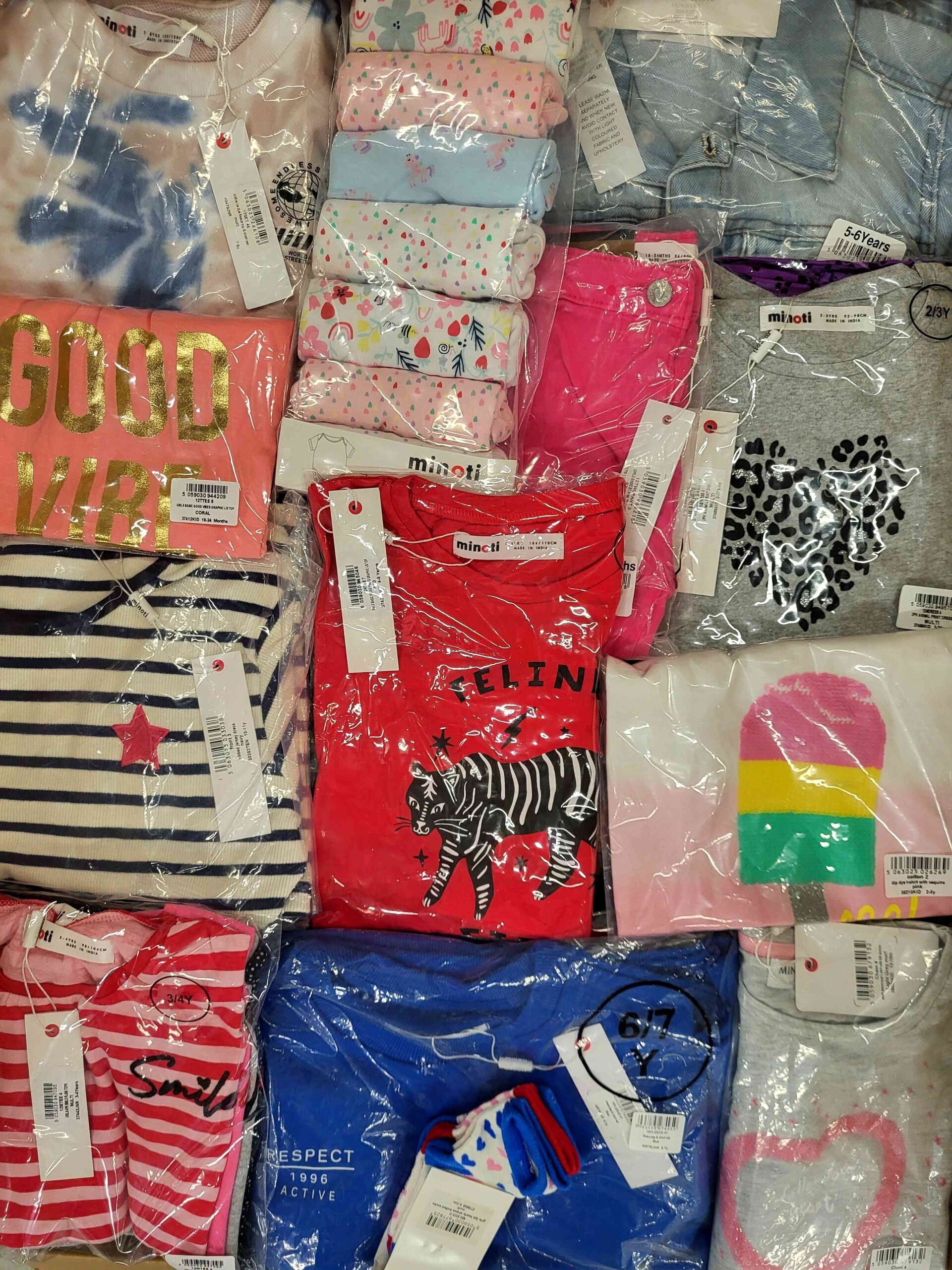 Pakiet odzieży dziecięcej marki Minotti składa się z około 100 sztuk nowych, oryginalnych ubrań przeznaczonych dla dzieci w wieku od 3 miesięcy do 14 lat.