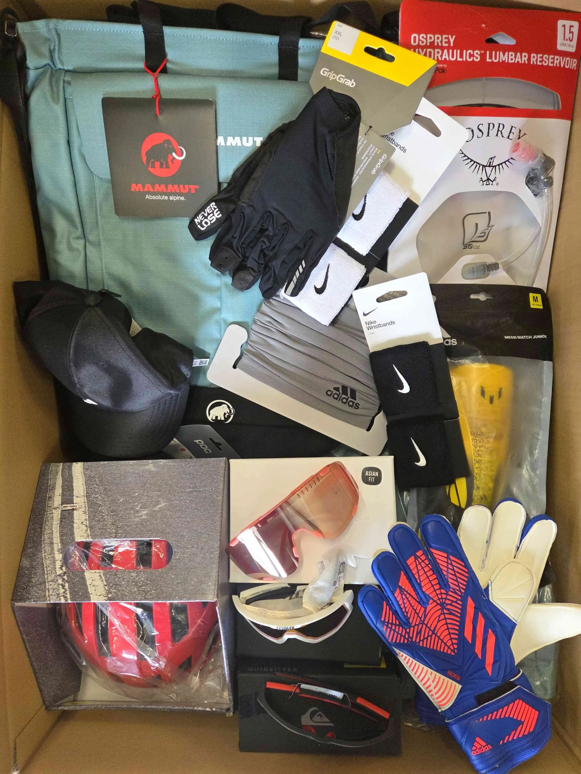 W pakiecie znajdą Państwo m.in. czapki z daszkiem, czapki zimowe, kaski, rękawiczki, plecaki, torby sportowe, maty do ćwiczeń, bidony, opaski do włosów, gogle narciarskie.