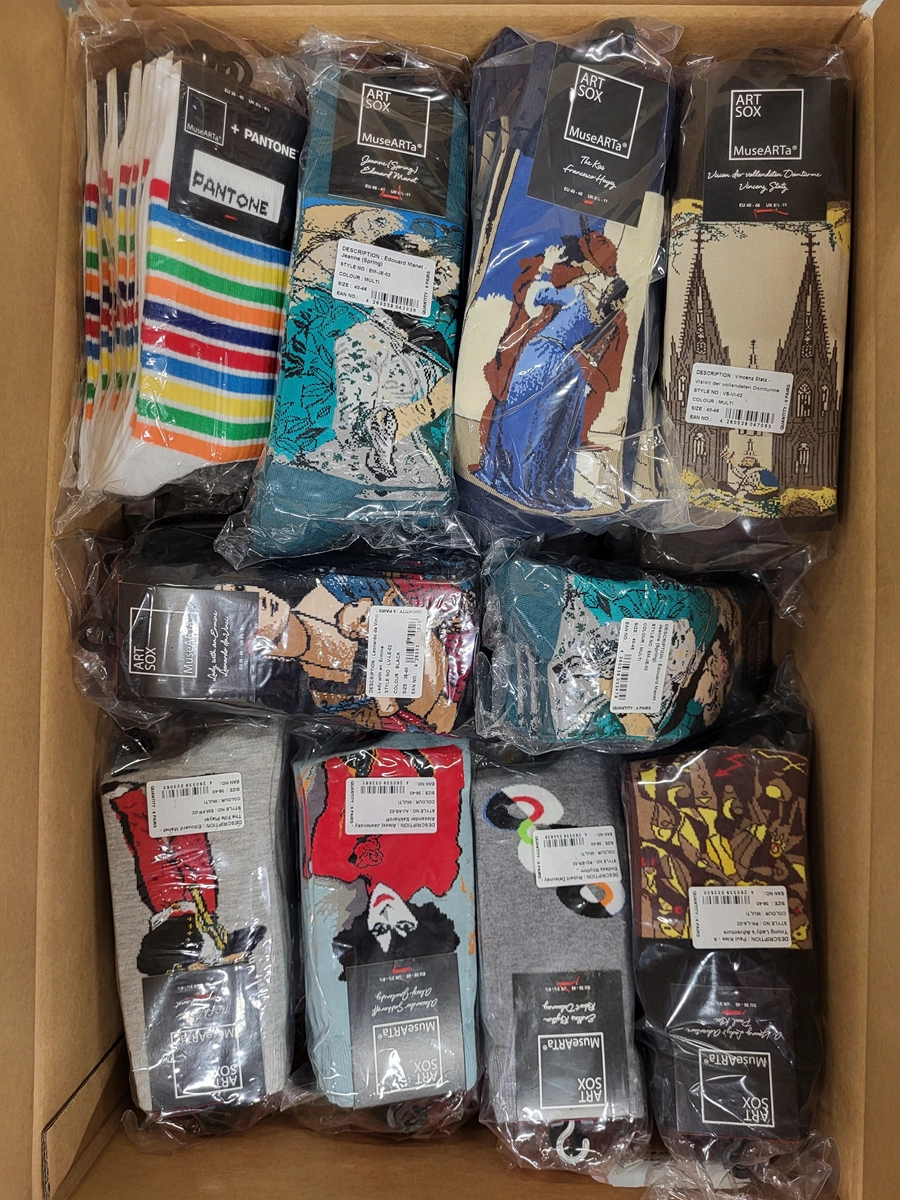 Pakiet ze skarpetkami, na których widnieją proste wzory lub najbardziej znane dzieła sztuki.
