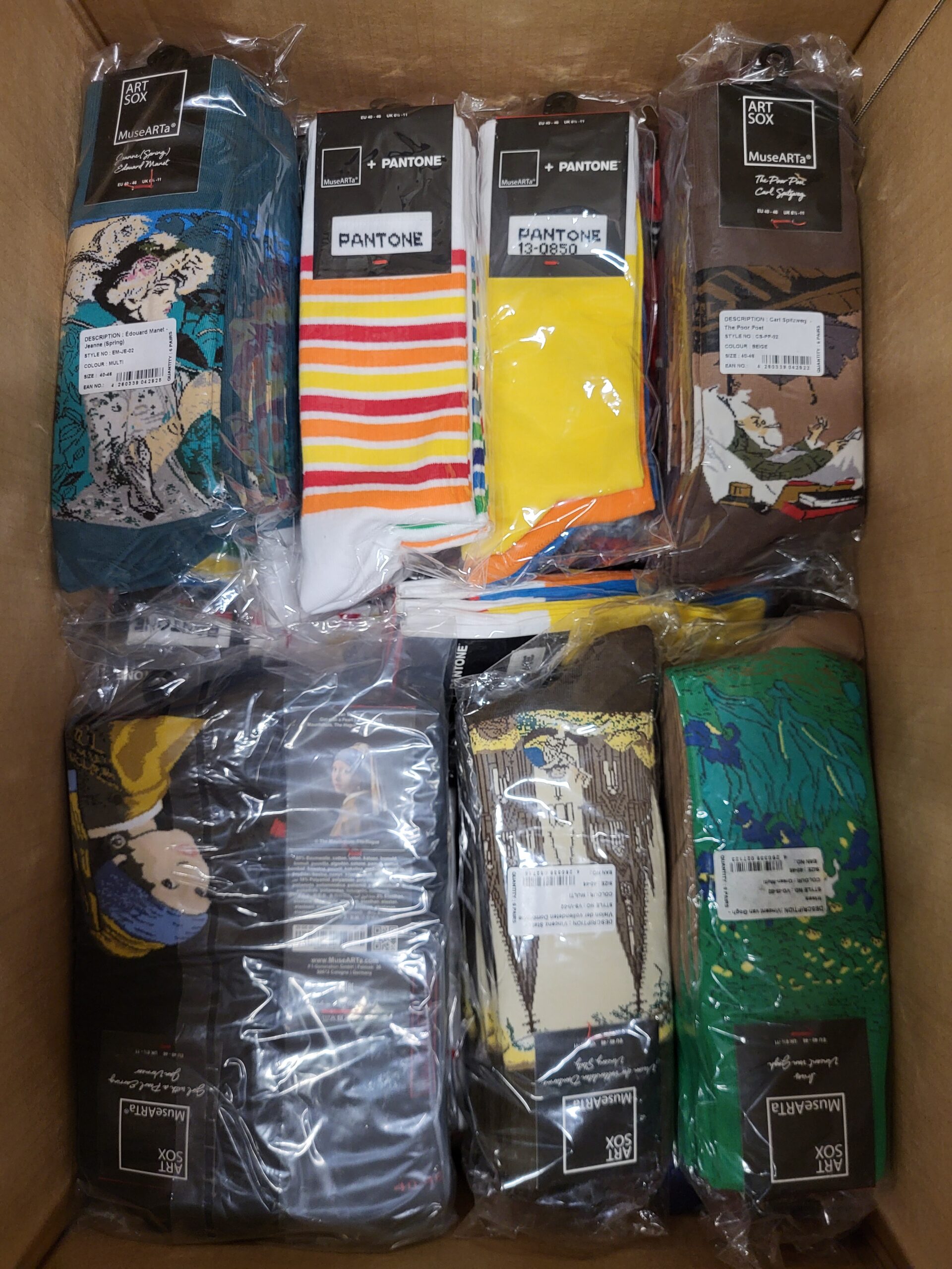 Pakiet ze skarpetkami, na których widnieją proste wzory lub najbardziej znane dzieła sztuki.