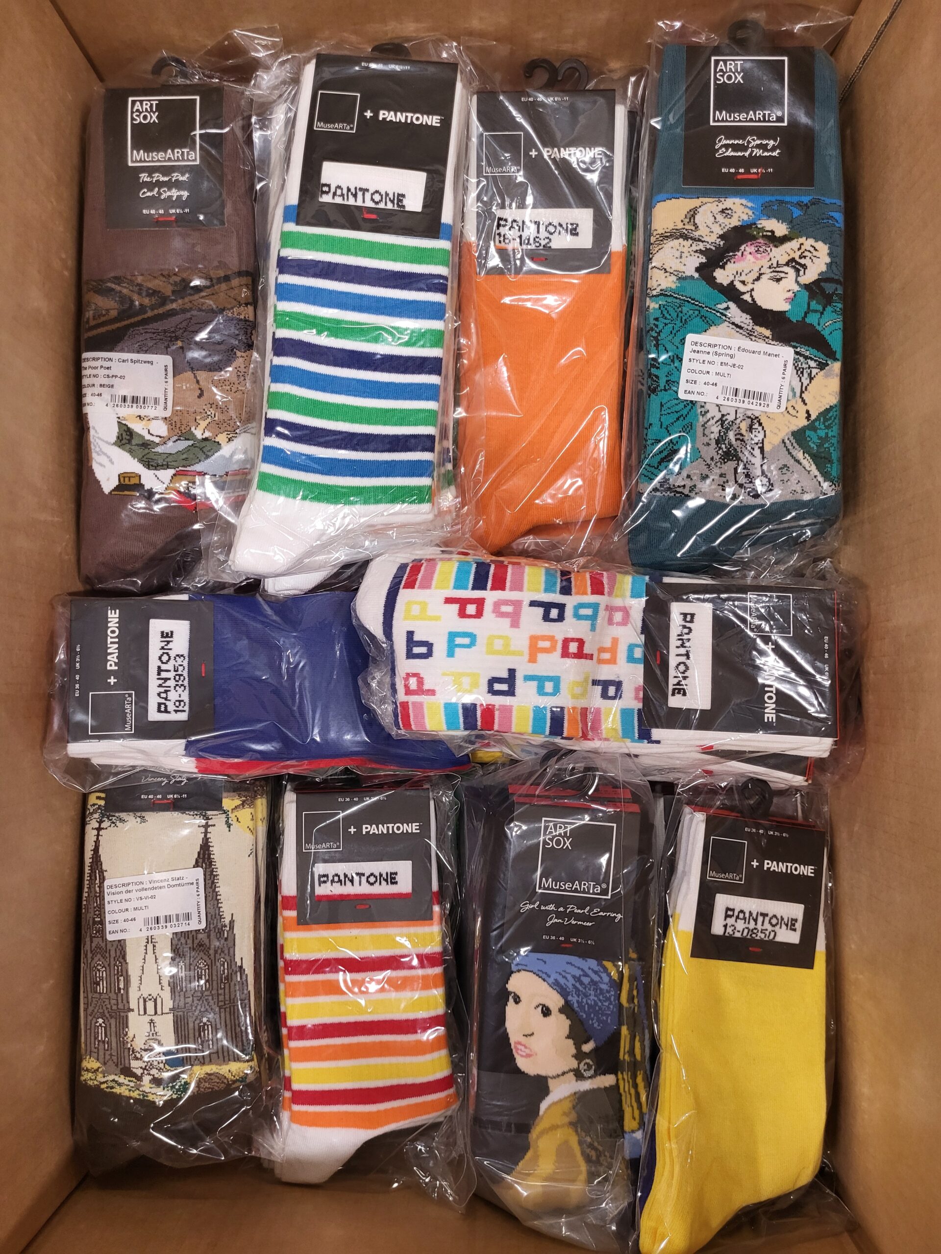 Pakiet ze skarpetkami, na których widnieją proste wzory lub najbardziej znane dzieła sztuki.