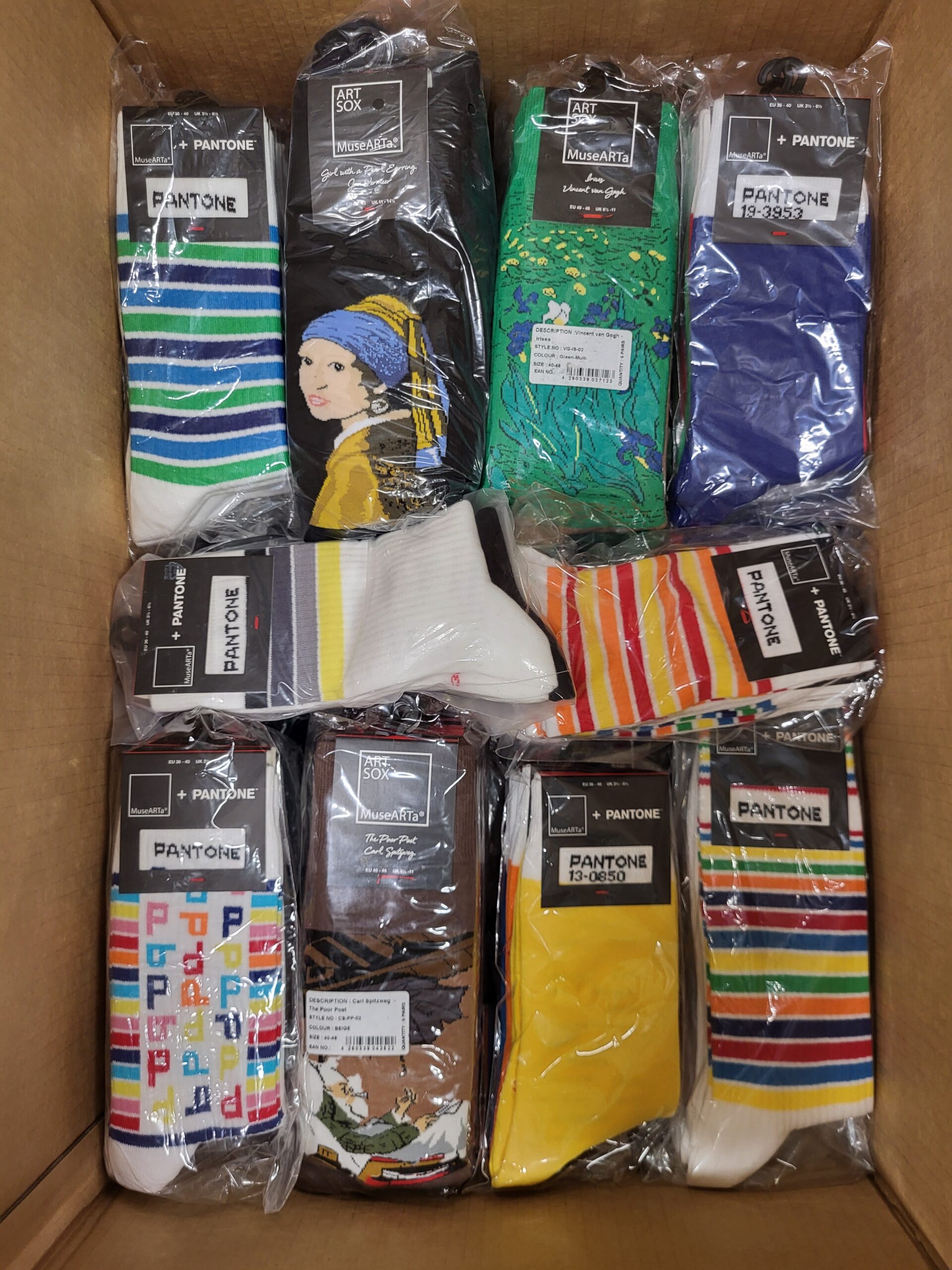 Pakiet ze skarpetkami, na których widnieją proste wzory lub najbardziej znane dzieła sztuki.