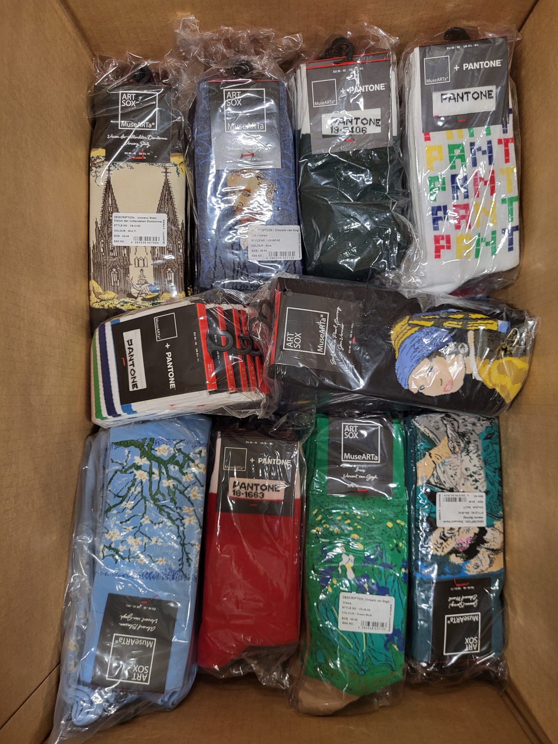Pakiet ze skarpetkami, na których widnieją proste wzory lub najbardziej znane dzieła sztuki.