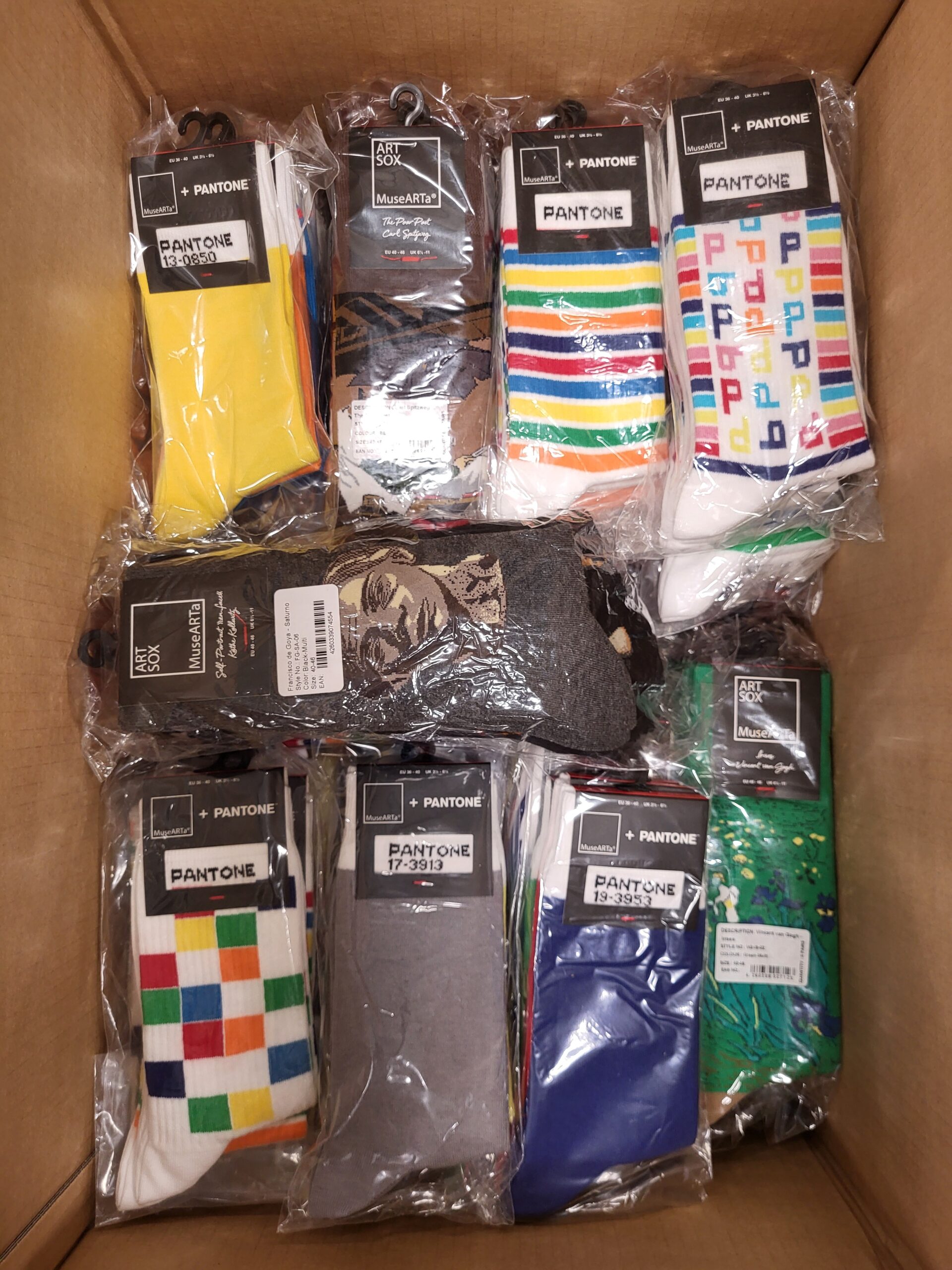 Pakiet ze skarpetkami, na których widnieją proste wzory lub najbardziej znane dzieła sztuki.