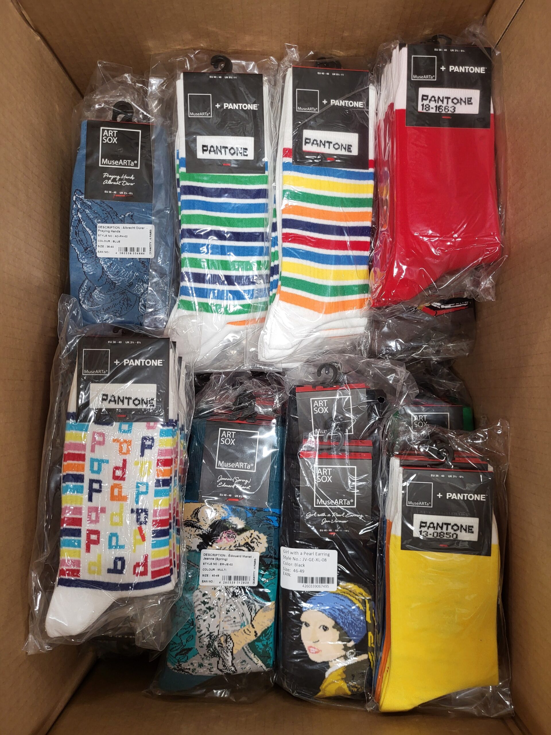 Pakiet ze skarpetkami, na których widnieją proste wzory lub najbardziej znane dzieła sztuki.