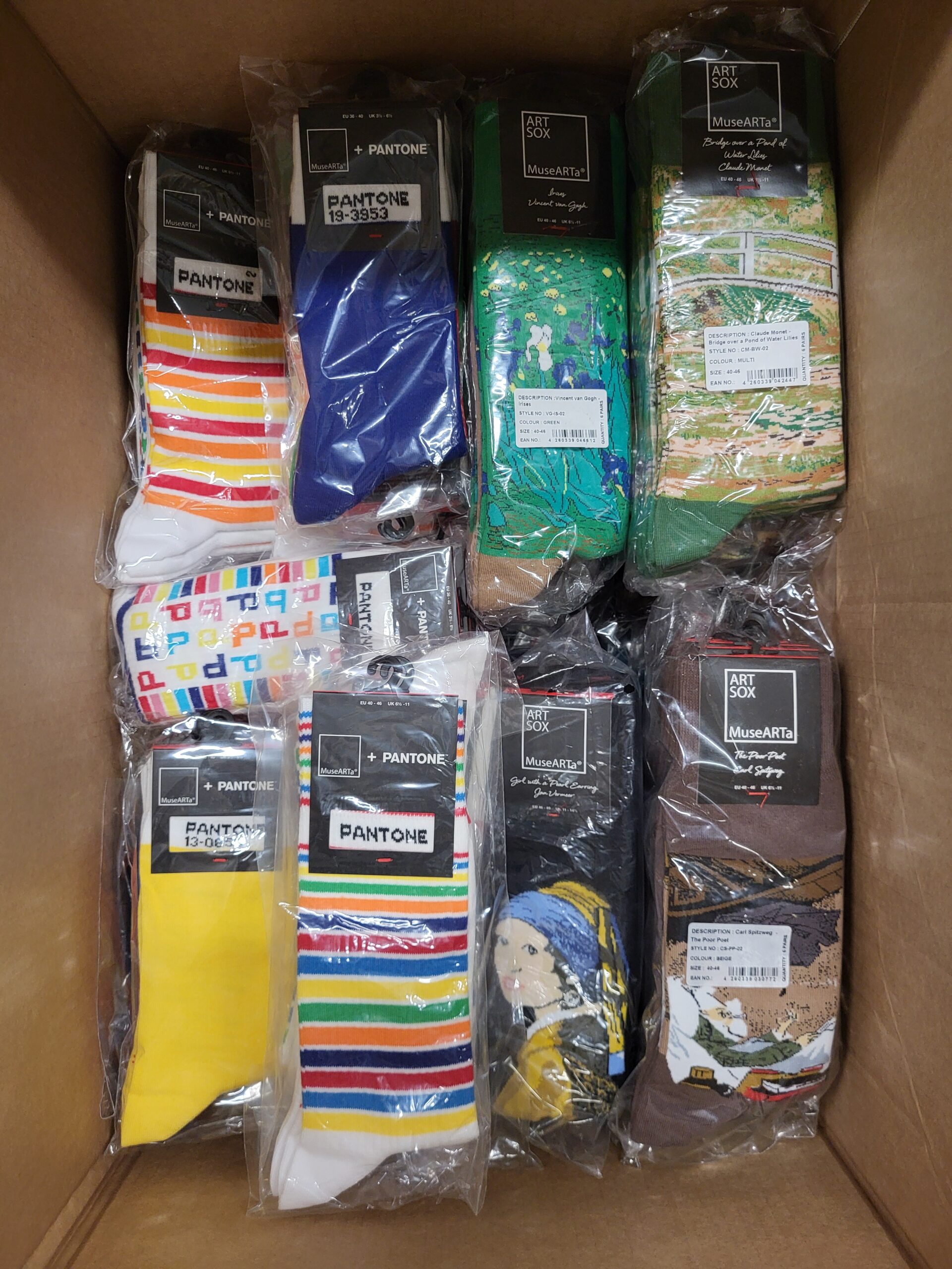 Pakiet ze skarpetkami, na których widnieją proste wzory lub najbardziej znane dzieła sztuki.