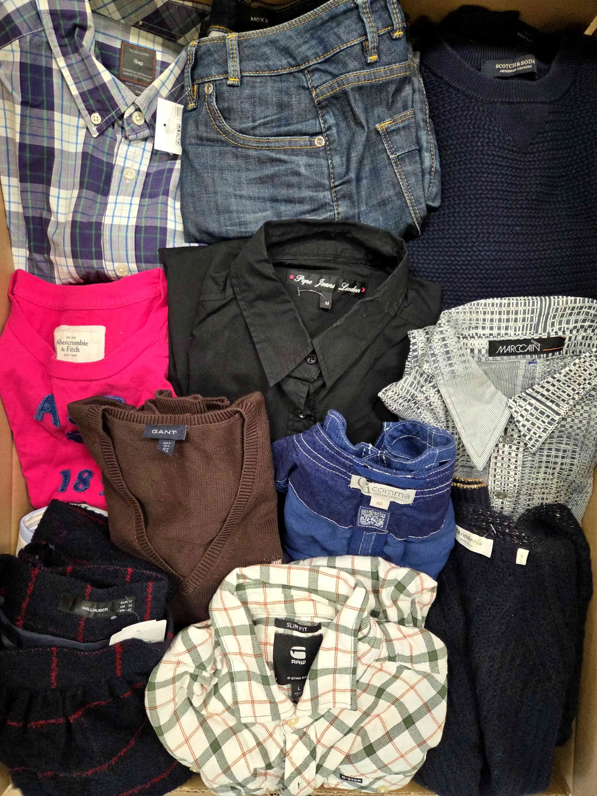 Każdy pakiet to zróżnicowany mix ubrań, w tym spodnie, bluzki, swetry, sukienki, spódnice, marynarki, kurtki, koszule czy modele Vintage, gotowe do dalszej sprzedaży. Odzież posiada typowe ślady użytkowania, a w niektórych przypadkach mogą występować drobne wady, takie jak spranie, przetarcia, brak guzika, zepsuty zamek.