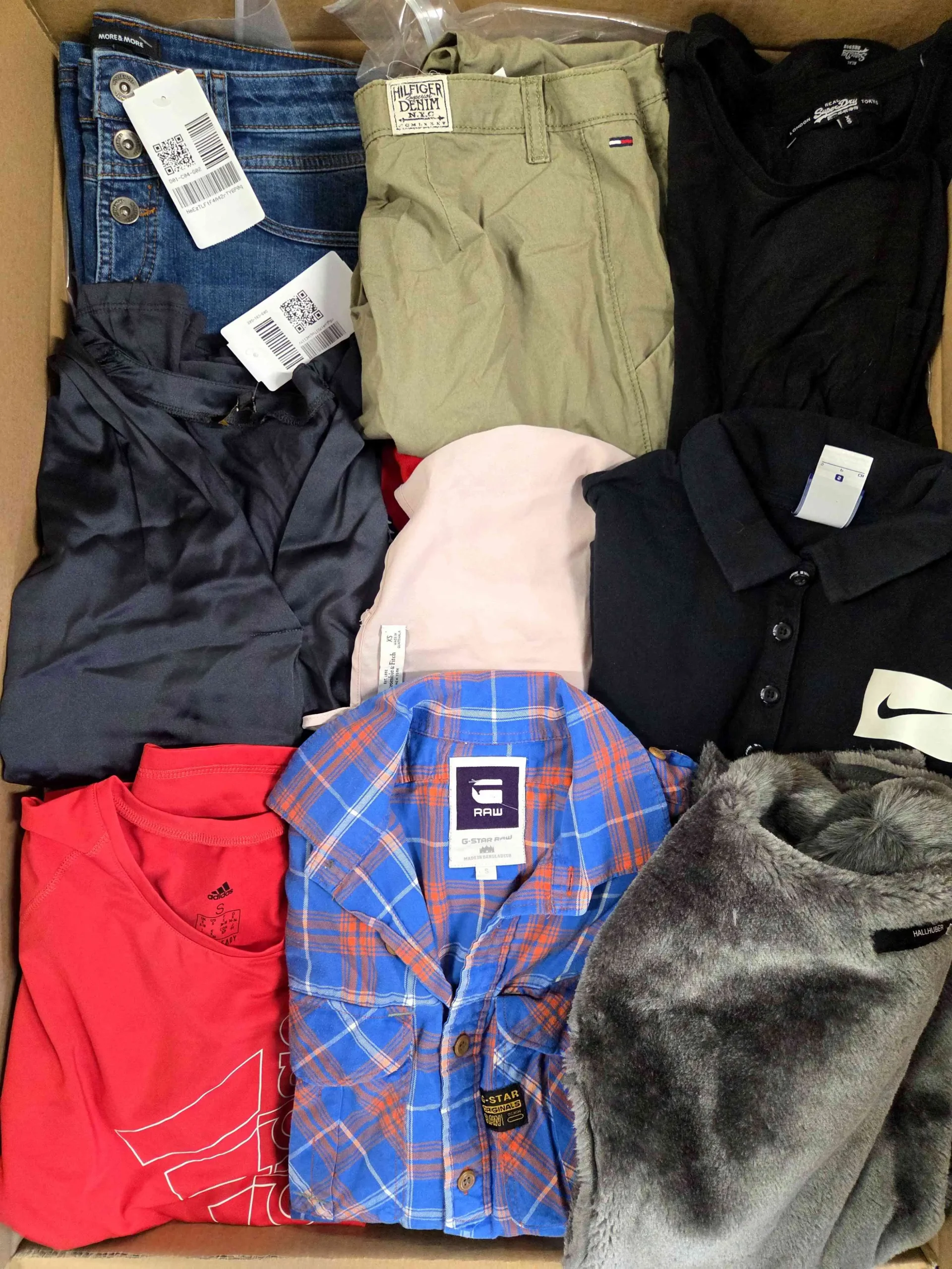 Każdy pakiet to zróżnicowany mix ubrań, w tym spodnie, bluzki, swetry, sukienki, spódnice, marynarki, kurtki, koszule czy modele Vintage, gotowe do dalszej sprzedaży. Odzież posiada typowe ślady użytkowania, a w niektórych przypadkach mogą występować drobne wady, takie jak spranie, przetarcia, brak guzika, zepsuty zamek.