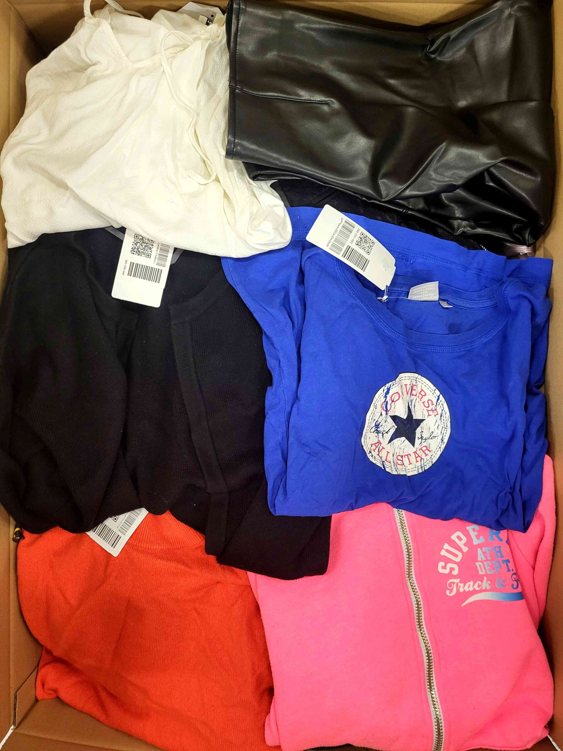 W pakiecie znajdują się m.in: spodenki, spodnie jeansowe, koszule, bluzy, swetry, sukienki, spódniczki, marynarki, t-shirt itp
